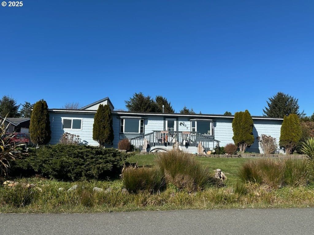 Looking for a large home to accommodate family and friends? Here it is! This 4 bedroom. 2 bath manufactured home has a 2 bedroom, 1 bath ADU Plus full hookups for your RV company. Need help with the mortgage? There is an assumable VA loan for $245,000 at 2.5%. The interior of the home has been sheet rocked and lots of bay windows have been added. There are special earthquake ties under the building. In case of a power outage the 7500 watt generator will keep you working until power is restored. Lots of new blinds have been installed including a custom bath. The charming ADU has one bedroom on each floor, plus a full bath and nice ocean views from upstairs. This large lot has plenty of space for your garden and the fenced rear area will keep your pets confined and happy. This unusual property is within walking distance of Fred Meyer store and the ocean. Listed to sell well below county assessed value.