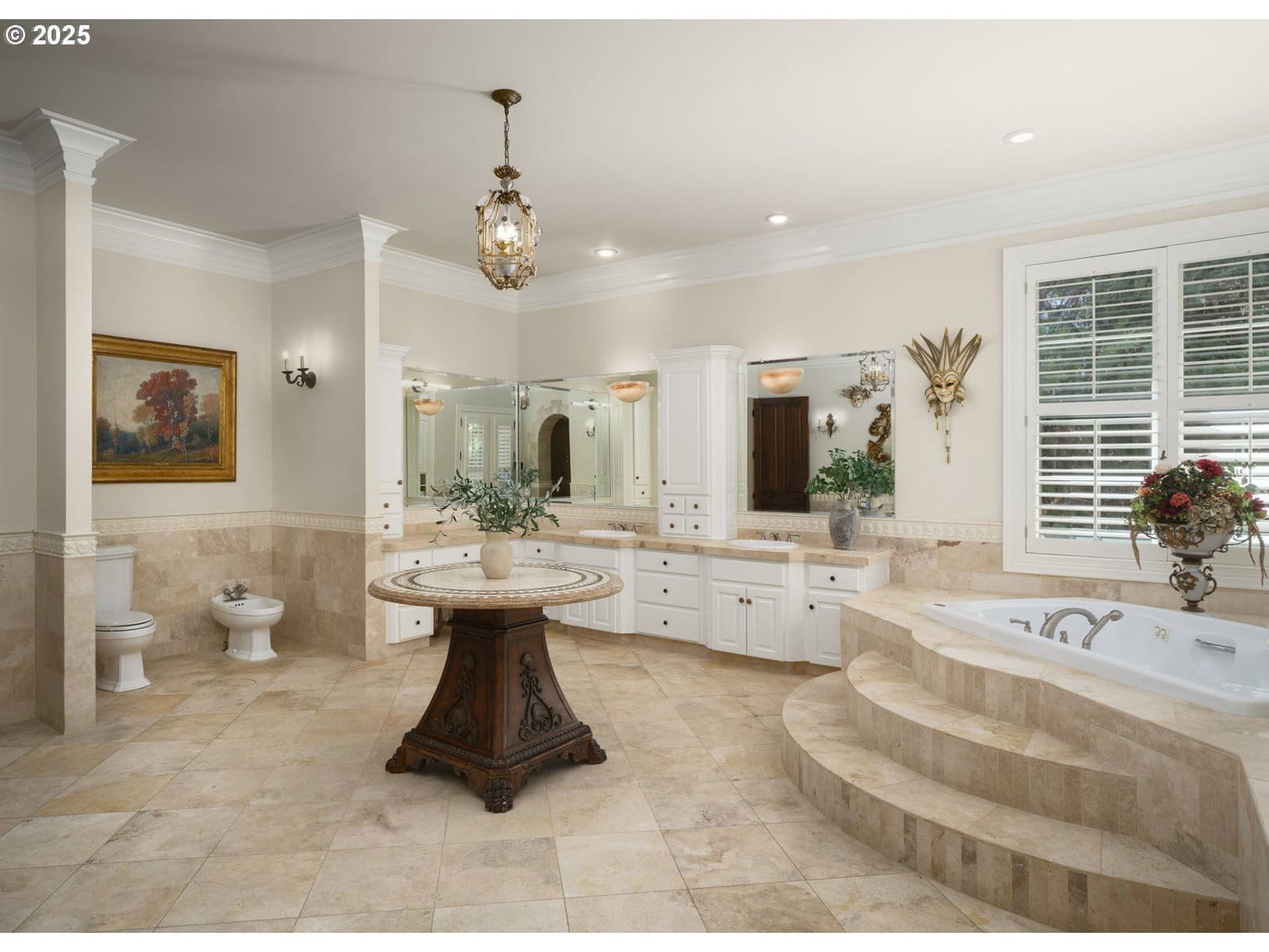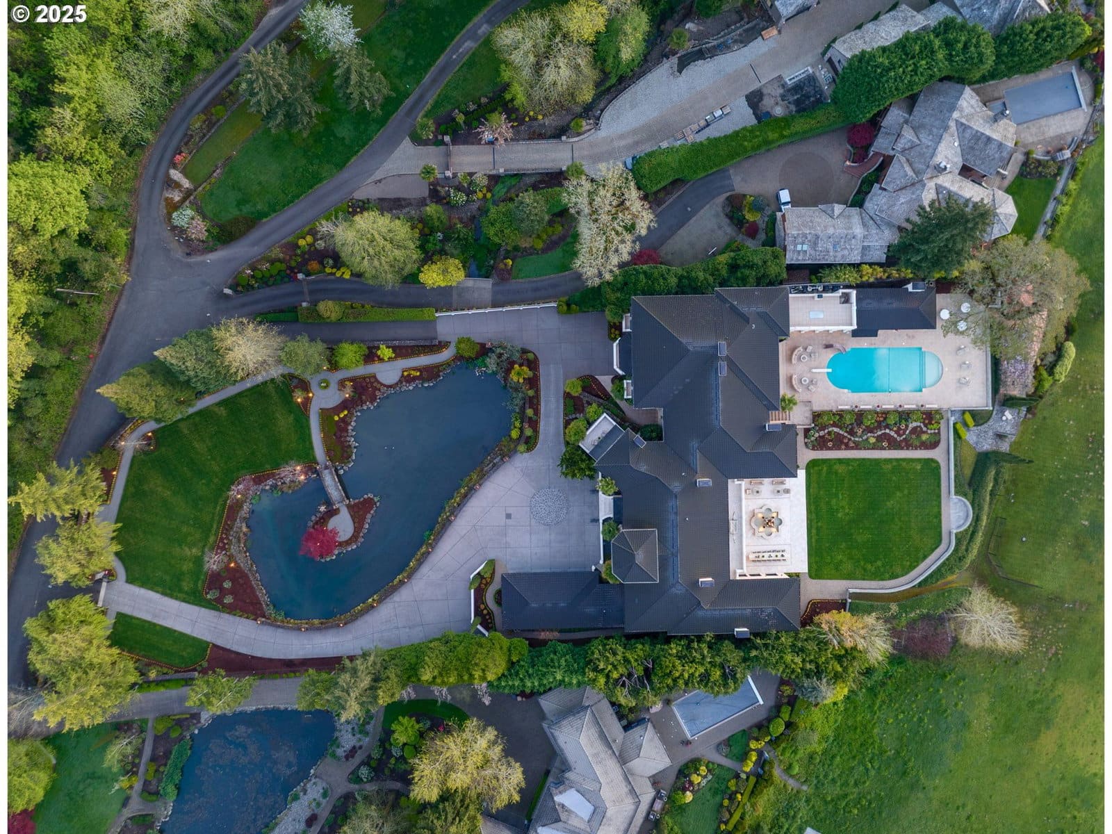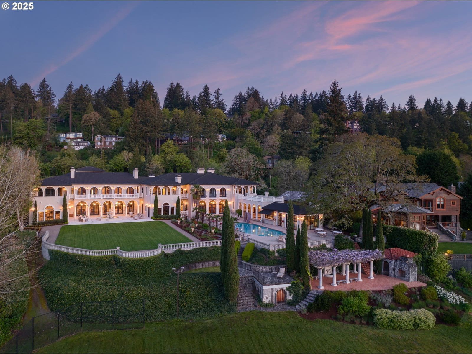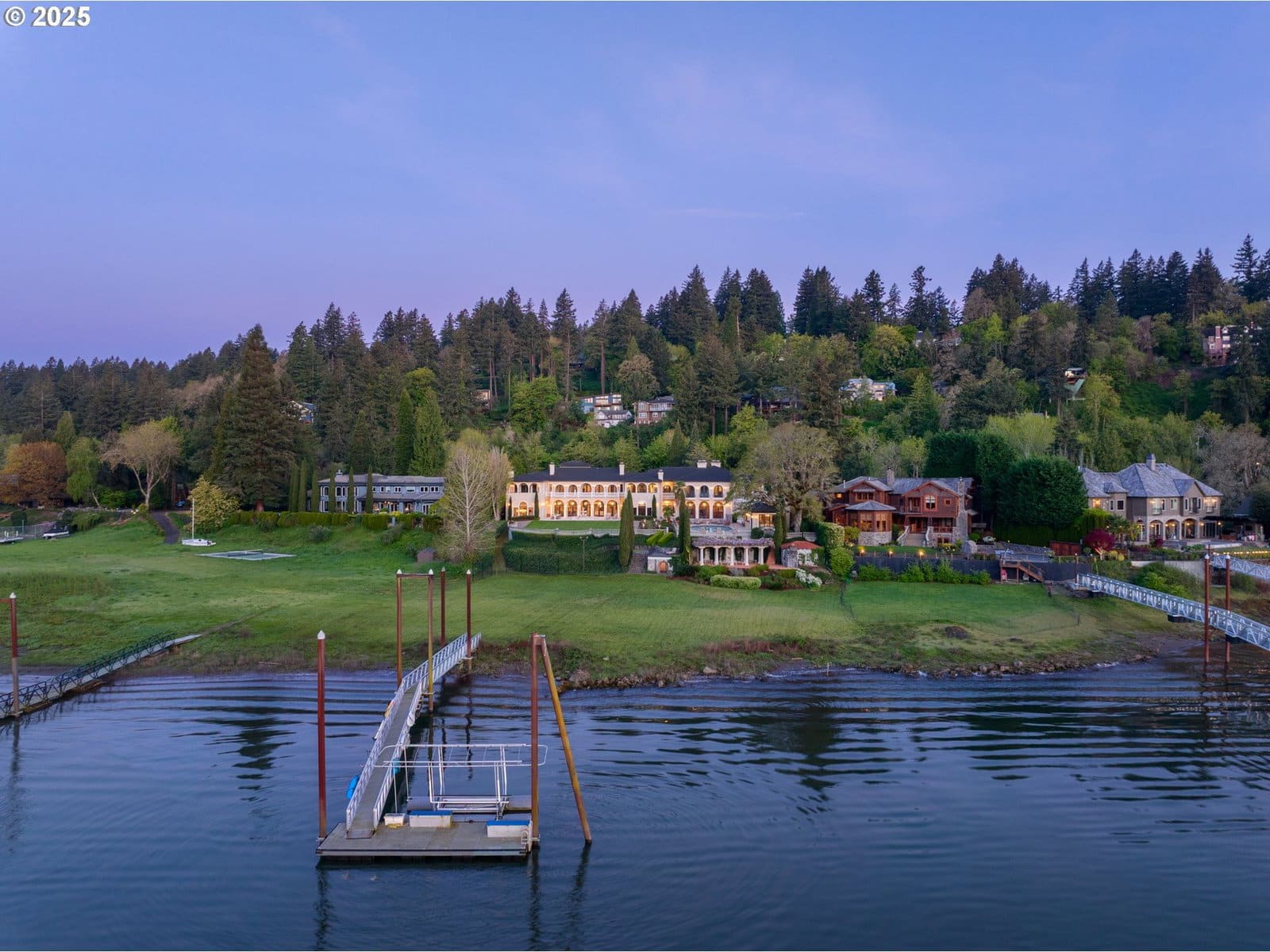 This exquisite estate will leave you speechless the moment you pass through the gates. Your very own pond greets you as you drive up the circular driveway. Step inside and prepare to be in awe of the custom finishes, jaw-dropping craftsmanship, and dramatic architectural and design details throughout. At the heart of the home, a stunning theater room boasts soaring ceilings, a grand fireplace, Juliet balconies, and a built-in stage that can transform into an elegant ballroom. Through the double doors, you'll find a home gym and a spacious billiards room, complete with a full bar and kitchen—perfect for entertaining. A dream for any reader, the home features an elegant library along with several beautifully designed home offices throughout. Striking hardwood floors lead you into a kitchen that’s a true culinary delight, with coffered ceilings, custom cabinetry, and top-of-the-line gas appliances. Hide away and play in the forest-themed playroom, complete with a treehouse bunk and a rope bridge. Upstairs, the primary suite offers a spa-like retreat with custom tile work, a large walk-in closet, double vanities, an oversized soaking tub, and a walk-in shower. With over eight additional bedrooms and eleven full bathrooms—each with its own unique charm—there’s room for everyone to relax in comfort and style. Step outside to enjoy resort-style living on your palatial patio, featuring seating for 20, a courtyard fountain, a fully equipped pool house, an expansive pool, an in-ground spa, and multiple entertaining areas—all with serene views of the Willamette River. Stroll down to your private dock and immerse yourself in everything the river has to offer. The property also includes 12+ garage spaces and a massive workshop located beneath the home. Don’t miss this rare opportunity to own one of Oregon’s most breathtaking riverfront estates.