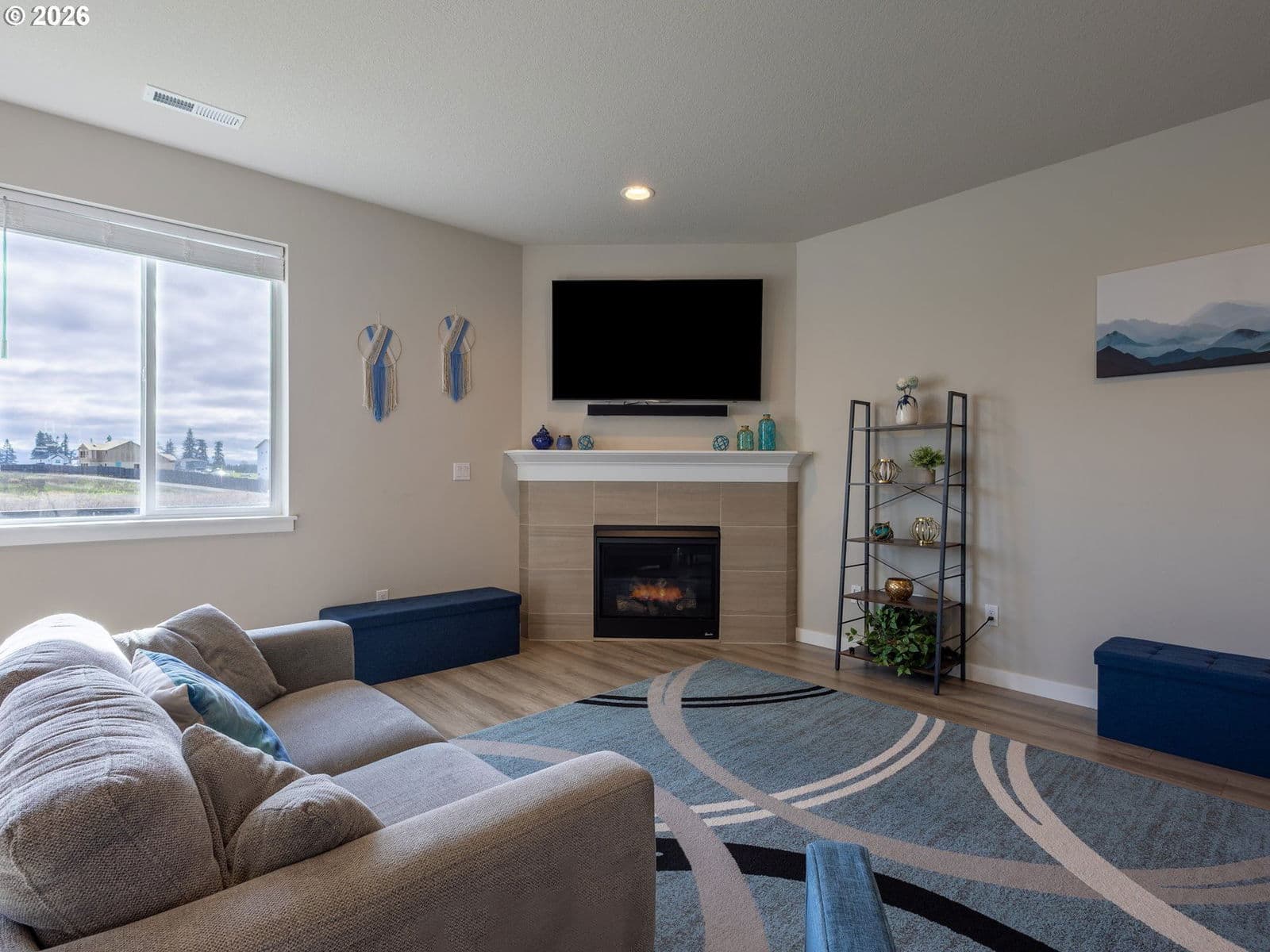 Wonderfully designed 4-bedroom home offering flexible living and spacious interiors. Upstairs features 3 bedrooms, including a generous primary suite with a private bath boasting double sinks, a soaking tub, large shower, and an expansive walk-in closet. A versatile bonus loft provides the perfect space for a media room, play area, or creative retreat.On the main level, the 4th bedroom or den offers an ideal setup for a home office or guest room. The open great room seamlessly connects to a beautifully appointed kitchen featuring a large island, quartz countertops, tile backsplash, pantry, abundant cabinetry, and stainless steel appliances—perfect for everyday living and entertaining.Step out from the dining area onto an impressive Trex deck overlooking the fully fenced backyard. Backing to expansive greenspace and wetlands with no rear neighbors, this home offers exceptional privacy along with scenic views of Mt. Hood and Mt. St. Helens on clear days. Open House Saturday March 28th 10am - 12pm and Sunday March 29th 11am - 1pm.