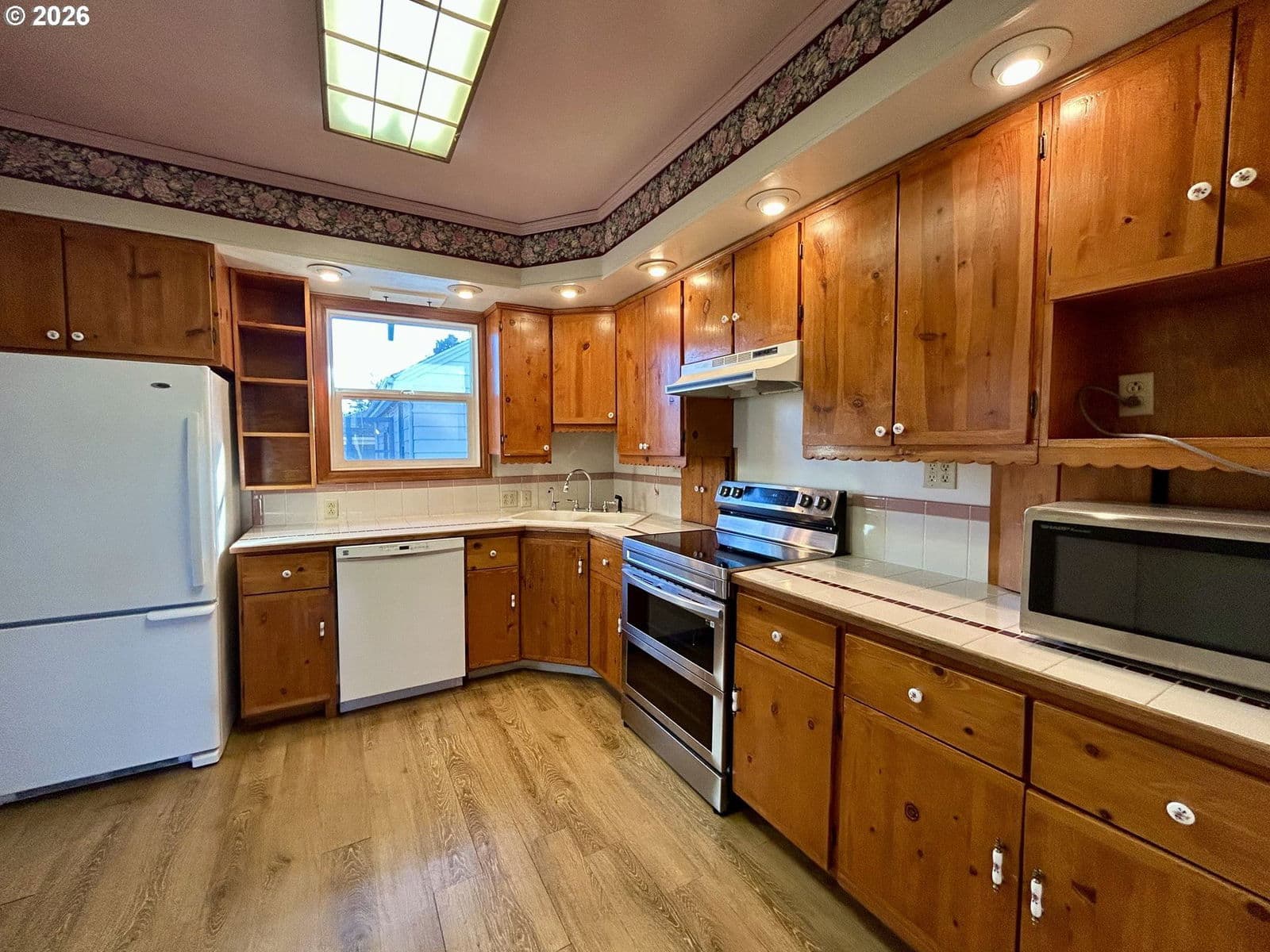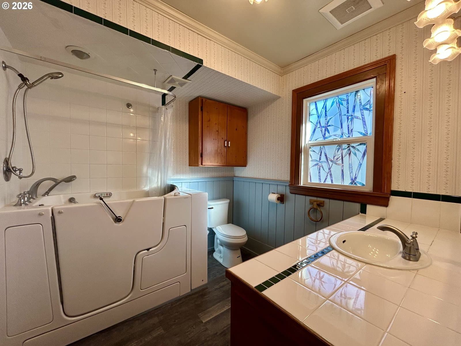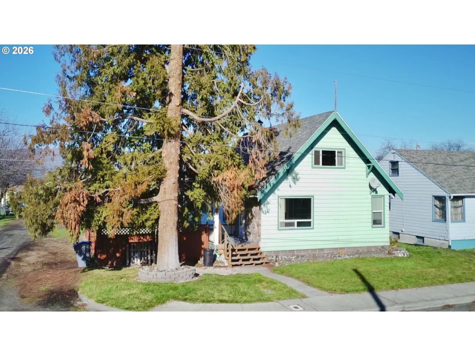 Corner lot property in a great, centrally located neighborhood in The Dalles. Large double-paned vinyl windows bring inviting natural light into the main living area of this cherished home. The kitchen is updated with lots of cabinet and pantry space and the adjacent utility room has extra storage and laundry. Main level living is complete with one full bathroom and two bedrooms, one with an attached half bath. Two bedrooms upstairs and a good sized landing area that can be used as flex space. The full basement is finished with concrete floors and wood stove making it a great space for hobbies, workshop, or work-out room! Fenced yard, alley access, and shed make this a great place for you and all your needs. Close to schools, hospital, downtown, and easy access to the freeway.