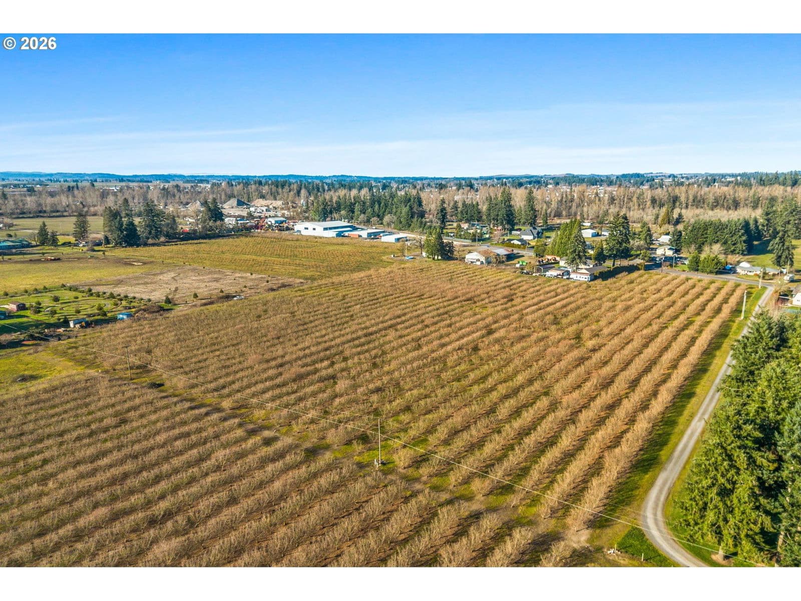 54days on marketIrrigated Hazelnut & Cropland Farm: ±92.07 total acres with ±86.50 tillable, including ±54.40 acres of hazelnut orchard. Primary irrigation water rights via multiple OWRD certificates/groundwater claims with priority dates from 1904–1962. Three irrigation wells onsite (two actively used), buried mainline with risers, and Class II Newberg/McBee soils. Spot drain tile installed within natural swales. Includes security fenced and gated gravel equipment yard with 7,100 SF building (5,000 SF machine shed, 2,000 SF shop, office/restroom); three power meters; domestic well; standard septic. Property supports diverse farming: hazelnuts include Jefferson planted 2016/17, and McDonald planted 2022. ±32.10 acres is currently in grass seed suitable for various crops. Orchard-view homesite; the existing manufactured home is not included (third-party owned), Linn Co indicates it is replaceable with county review/permit. Zoned FF (Farm Forest) in Linn County. This is 1 of 3 available irrigated farms – request info package for more details.