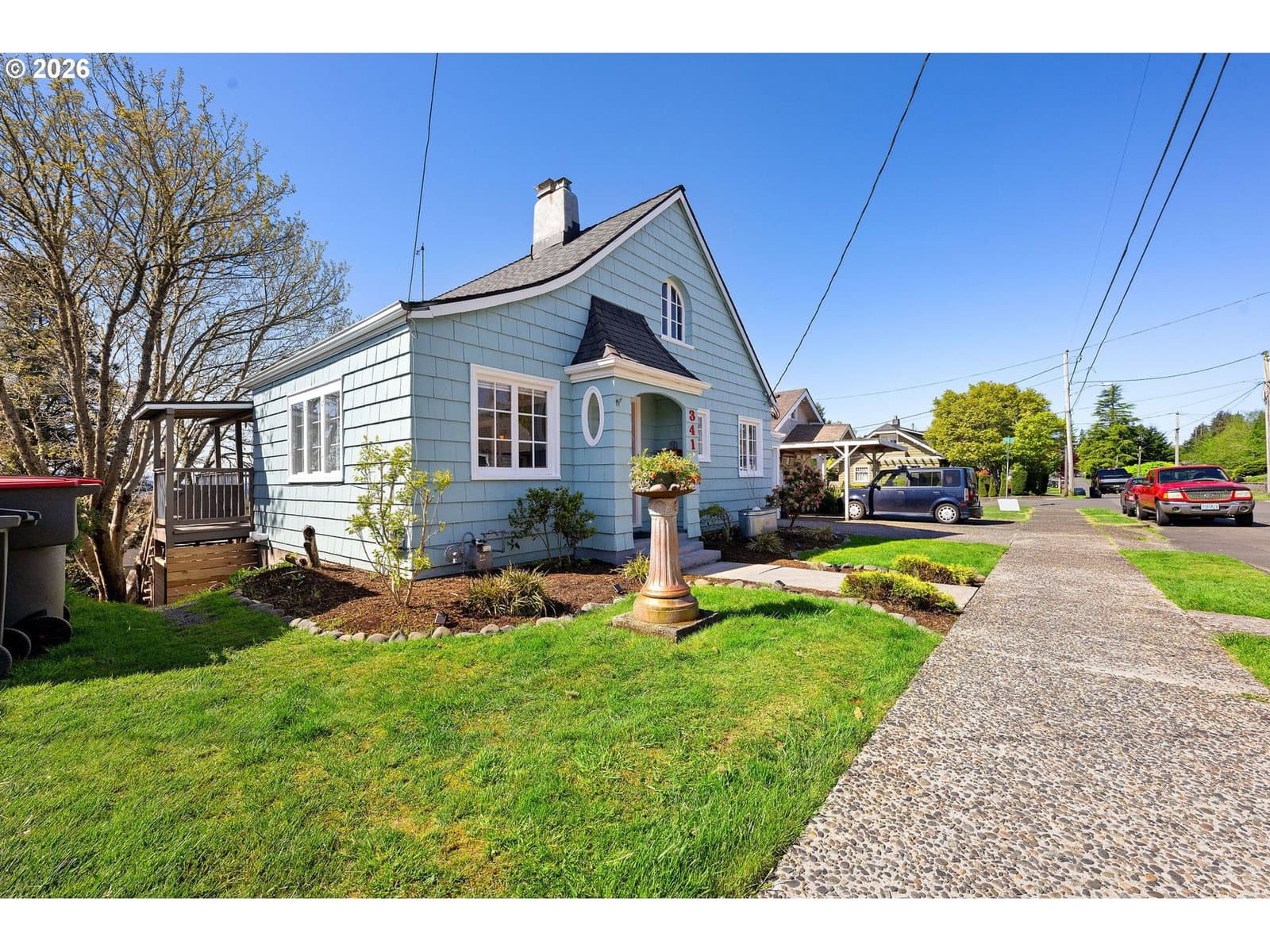 Charming and well maintained hilltop craftsman with updates throughout. Light filled living room with wood burning fireplace. Dining area with sliding glass door access to large deck with views of Saddle Mtn and Youngs Bay. Main floor features include original wood floors, primary bedroom, updated full bathroom with tile, kitchen with butcher block counter and more. Upstairs you'll find 2 more bedrooms and a tidy 1/2 bath. Fully fenced back yard is a gardeners dream with raised beds ready for spring planting! Plus full basement.