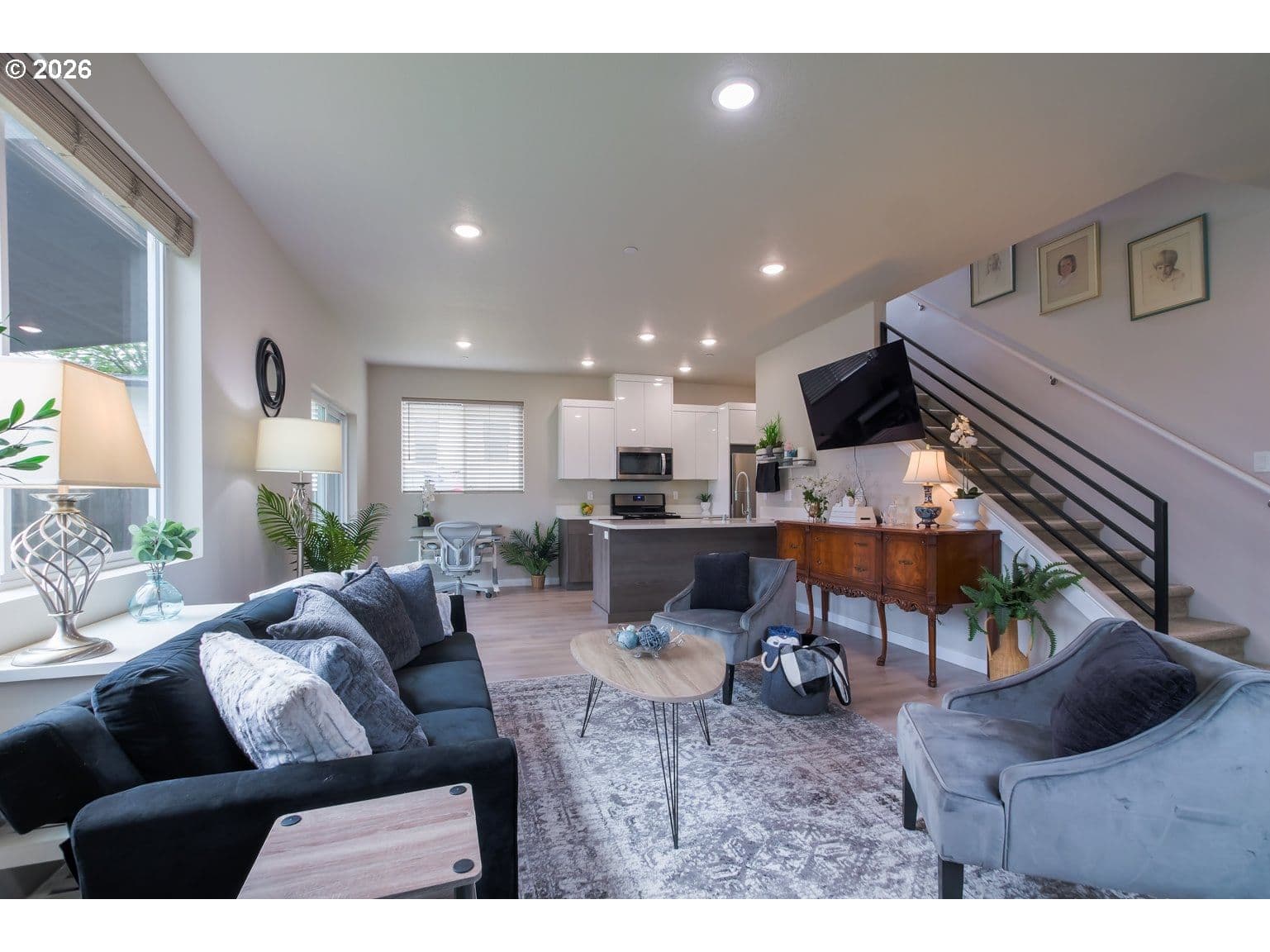 This lovely home is really the 'best of both worlds'. Enjoy a 5-year new home in an established neighborhood with NO HOA's! This 3-bedroom, 2 1/2-bath beauty is only 2 blocks from the newly renovated Crown Park. For the nature lovers, it is also close to Lacamas Lake, Round Lake, & Fallen Leaf Lake, all with great hiking trails. The location of this home is sublime, only about a half mile from vibrant Camas downtown, with shopping & restaurants, and it has easy access to SR 14. No matter what they say, though, location isn't everything. From the moment you enter this immaculate home, you will see what the home truly is: the star of this show. When you open the front door, you are greeted by high ceilings, light from a multitude of windows, and a warm entry that is a perfect 'drop-off' zone for coats & shoes. The great room has a corner gas fireplace with shiplap for that cozy, clean look, LVP flooring, gorgeous southern-facing windows, and an efficiently modern kitchen with quartz counters & an expansive pantry. Journey up the stairs with a sleek metal railing to the open 2nd floor. The south-facing primary bedroom enjoys a peek-a-boo river view, a walk-in closet, & a primary bath with quartz counters & dual sinks. There are 2 comfortable bedrooms on the front of the home, another full bathroom, & a convenient laundry room upstairs... where all your laundry is. This sweet home enjoys a well-thought-out floor plan for ease of living & peace of mind with interior fire sprinklers. My favorite part of the home is all the windows, both upstairs & downstairs, that really showcase the natural light... even on gray days, there are no dark corners in this spotless home. As our weather begins to warm, you will really enjoy the covered back patio, fully enclosed, fenced yard, and central air conditioning. If you are looking for a home with the 'full package', you have found it!