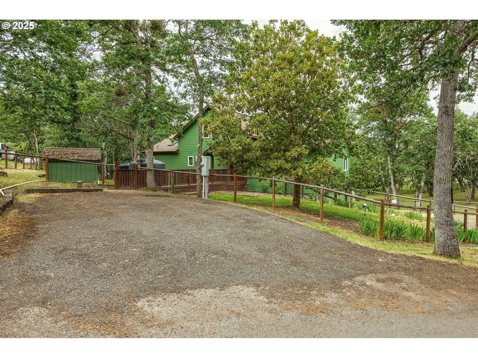 Welcome home to your beautiful chalet-style retreat with tree-lined hills views! Perfect location, centrally situated between historic Jacksonville & Ashland. Live in a scenic, greatly sought-after location. Minutes to town, yet a quiet country setting. Access bridge to the front entry. Enjoy the floor-to-ceiling sunset views from your great room or loft w/cathedral ceilings. Bright kitchen w/corner windows and sink, newer appliances. Open floorplan w/breakfast bar into dining room w/sliders out to a large wrap-around deck. Great for BBQs or outdoor dining. The main floor has 2 primary bedrooms. One has a balcony, walk-in closet/shoes-accessories organizer, & soaking tub. Finished basement has 3rd primary bedroom, a family room & office, newer sliders, with a separate entry. Possible Airbnb, great for a large family, in-laws, or possibly be 2-family setup. Ceiling fans throughout. Newer flooring, electricals, and added decks. Low maintenance yard, fully fenced, timed drip/sprinklers, garden area, RV area with hook-ups. Minutes to shopping and restaurants. So much more - See upgrades list