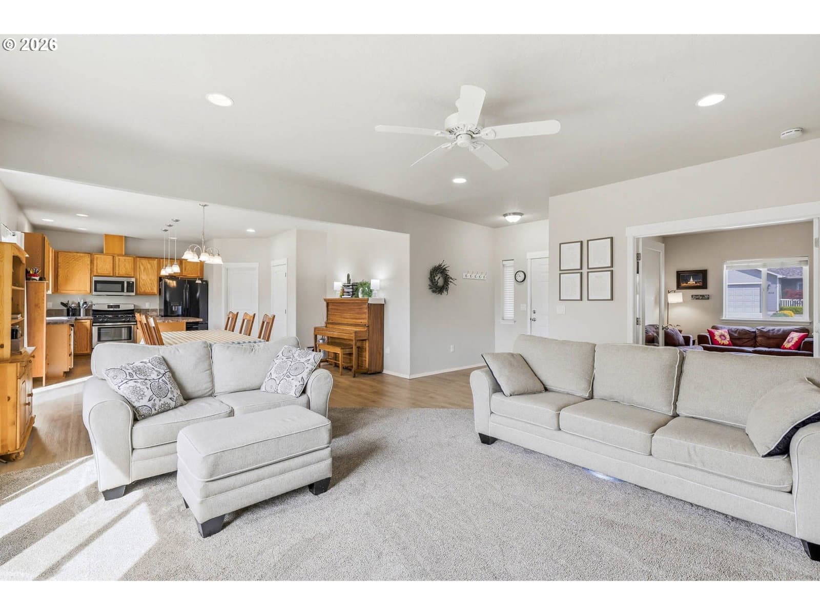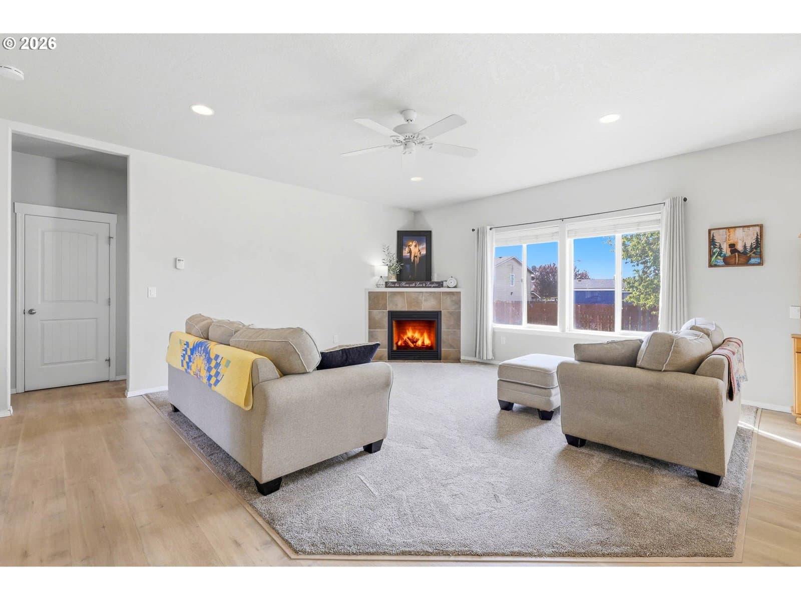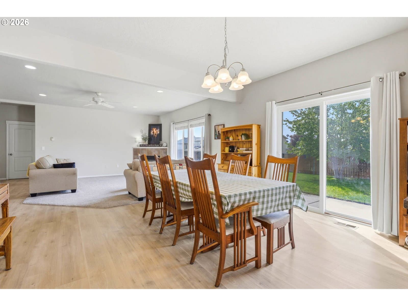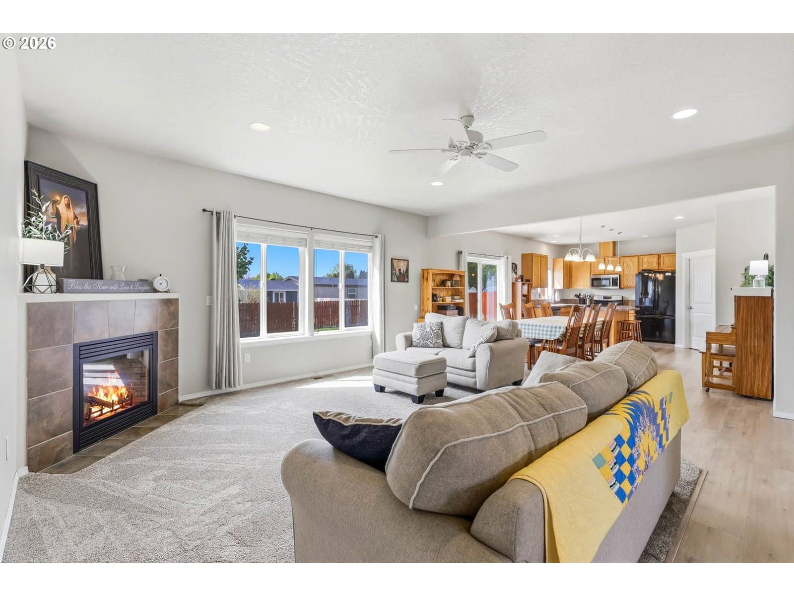 Welcome to this beautifully maintained single-level home nestled in a quiet cul-de-sac in Boardman! Offering 3 bedrooms plus a versatile den that could easily serve as a 4th bedroom, this home combines comfort, functionality, and style.Step inside to discover tall ceilings and an inviting open-concept layout filled with natural light. Updated flooring flows throughout the home, creating a cohesive and modern feel. The spacious living area features a cozy fireplace and seamlessly connects to the dining space and kitchen—perfect for both everyday living and entertaining.The kitchen offers ample cabinetry, generous counter space, and a convenient breakfast bar, while the dining area opens to the backyard for easy indoor-outdoor living.The flexible den provides the perfect space for a home office, guest room, or additional bedroom. The primary suite and additional bedrooms are well-sized, and two full bathrooms offer comfort and convenience for family and guests.Outside, enjoy a low-maintenance yard, a large driveway, and an attached garage with extra space for parking and storage. Ideally located close to schools, the library, parks, and grocery shopping, this home offers both convenience and a welcoming neighborhood setting.Don’t miss the opportunity to make this move-in-ready home yours!