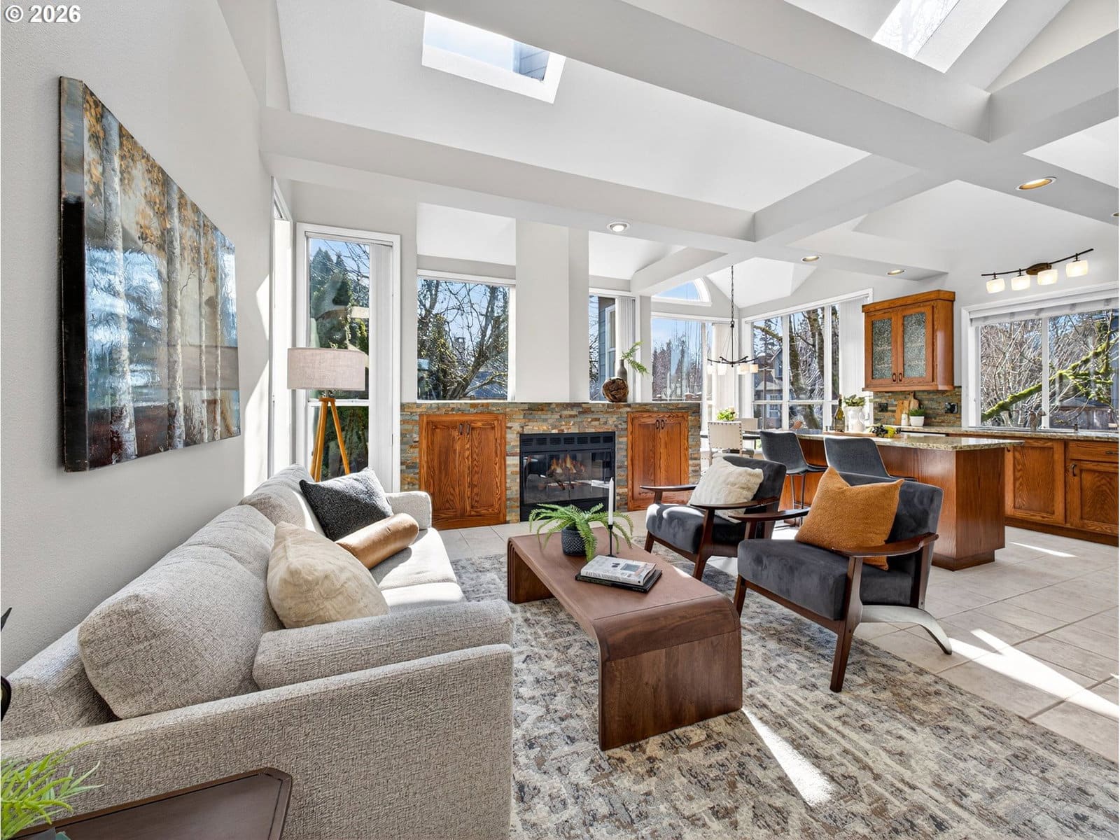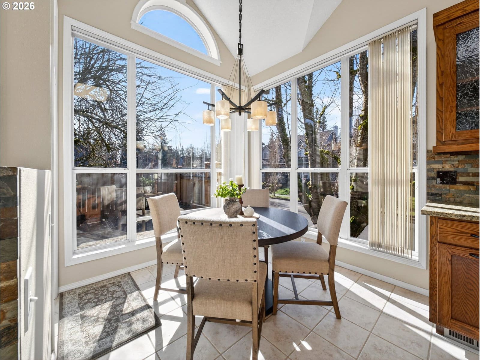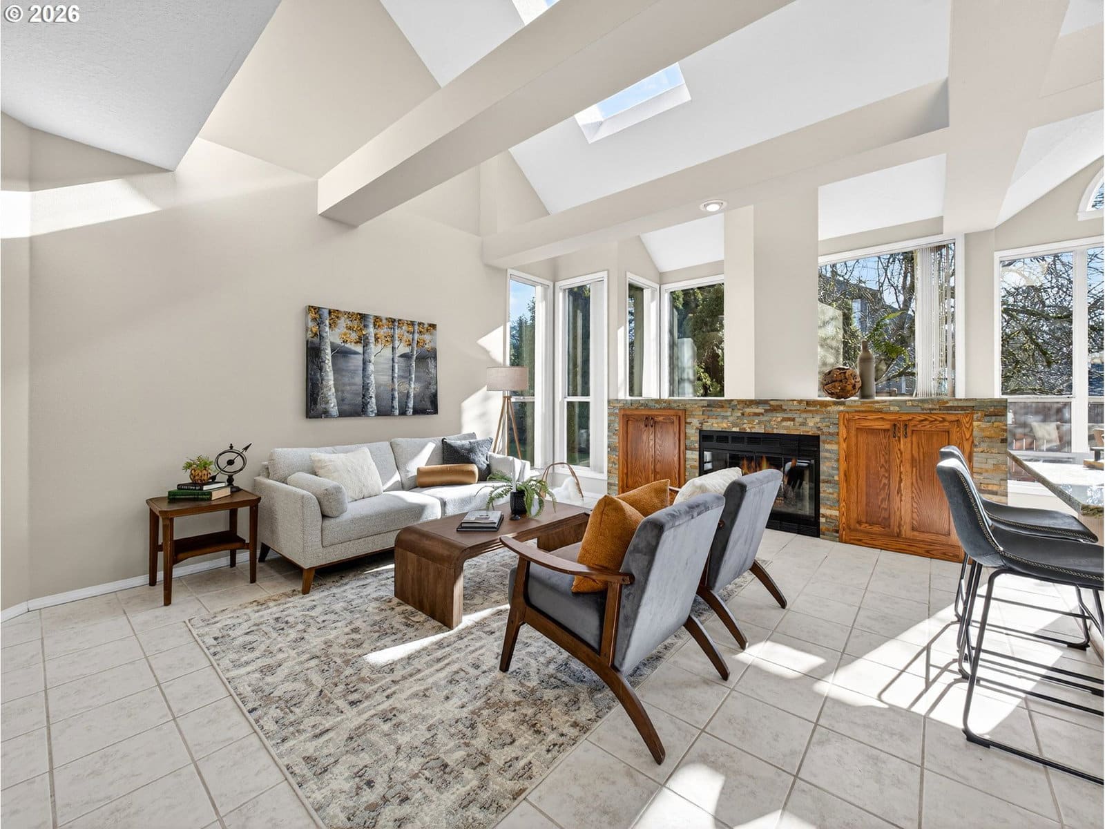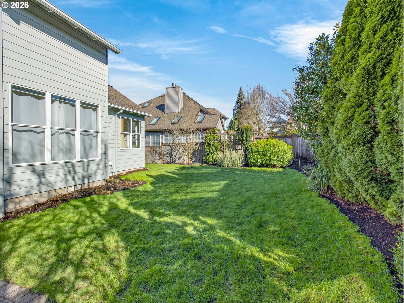 4 bdrm + den. Beautiful Fox Hill home w/main-level living features light-filled vaulted living spaces, large windows & skylights. Living room opens to formal dining room. Updated kitchen has slab granite countertops, ss applcs, soft close cabinetry, eating island & walk-in pantry. Sunny nook w/floor-to-ceiling windows & door to large patio. Family room has French doors, vaulted beamed ceiling, stone fireplace & built-ins. Main level primary suite has updated tiled bathroom w/dual sinks & soaking tub. Main level den w/French doors & nice size closet w/organizer. Versatile bonus room & den work well as additional bedrooms. Fenced backyard w/extended paver patio, grassy area & auto sprinklers. Oversized 3-car garage w/storage closet & 240V for EV Charging. Ring doorbell. Exterior paint (2023). Gas furnace & heat pump (2022). Located near Legacy Meridian Park Hospital, Browns Ferry & Atfalati parks, Tualatin Greenway Trail, Bridgeport Village, commuter transportation, and 1-5 & 1-205 freeways.