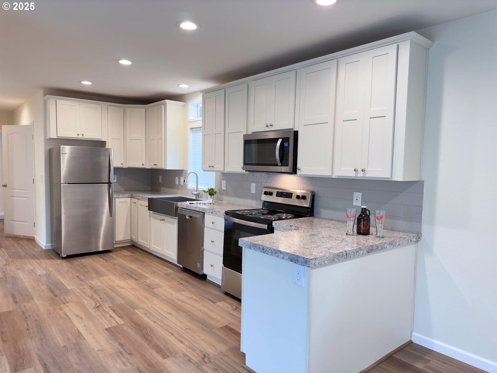 Unit 14 is also for sale. **Introducing a stunning 2024 Karsten Double Wide located in Evergreen Mobile Estates, a tranquil 55+ community. With 1,023 sq ft of thoughtfully designed space, this home offers a sophisticated blend of comfort and style. The open great room design features large windows, flooding the living area with natural light. Culinary adventures await with new stainless steel appliances: refrigerator, dishwasher, built-in microwave, and range/oven. The vaulted primary suite offers a walk-in closet and its own bathroom. Laminate flooring enhances the modern aesthetic throughout. Enjoy outdoor relaxation on the expansive covered front porch deck. The extra deep carport accommodates 2 cars with room to spare, plus a versatile workshop or storage shed. Space rent includes water, sewer, and garbage. Conveniently located near shopping, dining, and major transport routes for easy access.