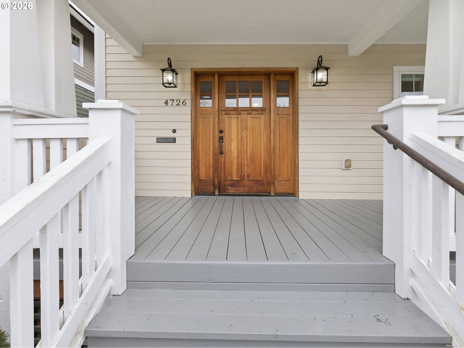 Built in 2007 with timeless character, this exceptional home was designed to look and live like a classic Foursquare, but with the comfort, layout, and efficiency of newer construction. The quality of construction, smart floor plan, and refined finish details truly set it apart. A wonderfully wide & gracious main floor, rare for homes inspired by this era, creates an inviting, open feel perfect for everyday living and entertaining. Real, solid hardwood floors run throughout the first & second levels, complemented by fresh interior paint. Upstairs offers comfortable bedrooms & classic proportions, while the finished basement with impressive 9-foot ceilings provides fantastic bonus space for media, guests, or hobbies. Enjoy quiet mornings on the charming front porch swing, or unwind in the private, fenced backyard with deck, ideal for dining and summer BBQs. A detached garage adds convenience and flexibility. All this just 1.5 blocks from the vibrant shops and restaurants of the Alberta Arts District, close enough to enjoy the energy, yet tucked away on a peaceful street. A rare blend of classic style and modern comfort. [Home Energy Score = 9. HES Report at https://rpt.greenbuildingregistry.com/hes/OR10243735]