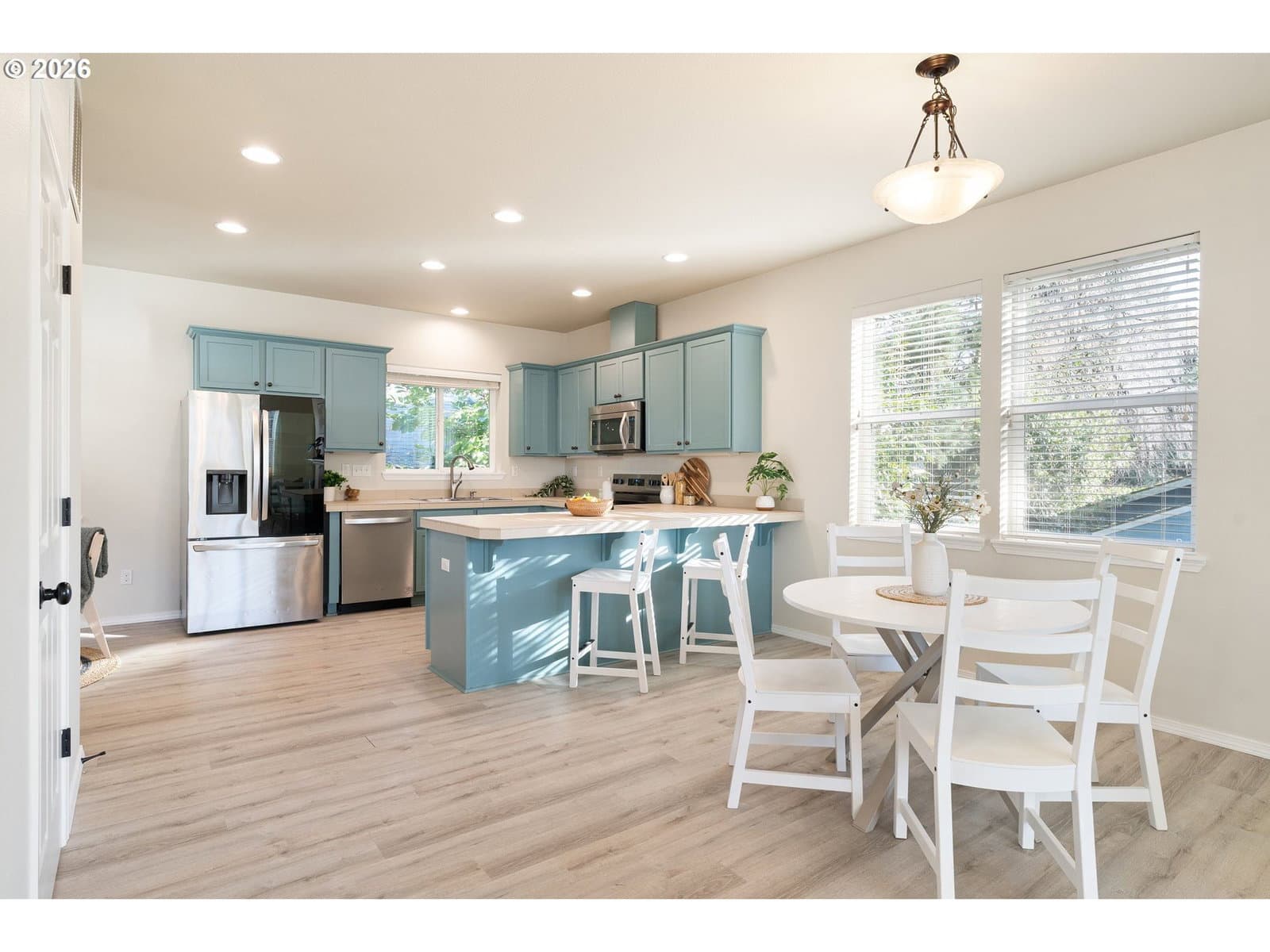 Experience the convenience of living just blocks from the heart of Multnomah Village, where you’ll find a lively mix of food carts, restaurants, bars, coffee shops, the public library, local boutiques, and Portland’s oldest toy store. Quick access to I-5—less than two minutes away—makes commuting simple and efficient. This three-level, three-bedroom, two-and-a-half-bath home offers the ease of low-maintenance living with no HOA and minimal exterior upkeep. While there is no traditional backyard, a green space out front provides a pleasant outdoor setting. The home is also walkable to nearby parks, offering access to trails, open lawn areas, and a variety of outdoor amenities. The main level features luxury vinyl flooring throughout the living room and kitchen, an upgraded smart refrigerator, and a comfortable breakfast nook. Upstairs, the spacious primary suite includes a walk-in closet and double-vanity bath, with two additional bedrooms offering flexibility for a variety of needs. The oversized tandem garage accommodates two vehicles with potential room for a third small car and provides generous storage. In addition to the garage, there is ample off-street parking—an added convenience in this desirable location. Central air conditioning ensures year-round comfort. A rare opportunity to enjoy low-maintenance living in a vibrant Southwest Portland location. [Home Energy Score = 6. HES Report at https://rpt.greenbuildingregistry.com/hes/OR10245127]