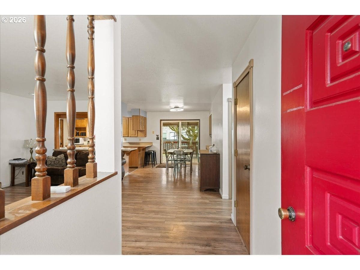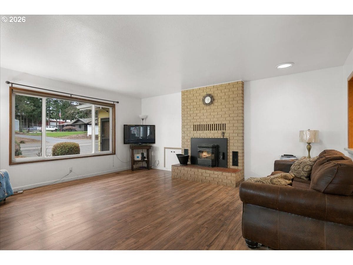 Single-level home in a desirable edge-of-town location featuring an oversized garage and a 24 x 26 shop. The living room includes a cozy pellet stove, and four solar tubes in the house provide abundant natural light. The home offers 3 bedrooms, 2.5 bathrooms, a potential office space (10 x 10) bonus room located in the garage. The expansive parking area includes an RV dump station. The extra-large garage also features a tandem area ideal for a workshop.Enjoy the covered back deck overlooking the yard. The property is connected to city sewer and has a private well for extensive lawn and garden use. Possible dual living setup. Room for ADU. Situated on 0.43 acres, this home offers endless possibilities.