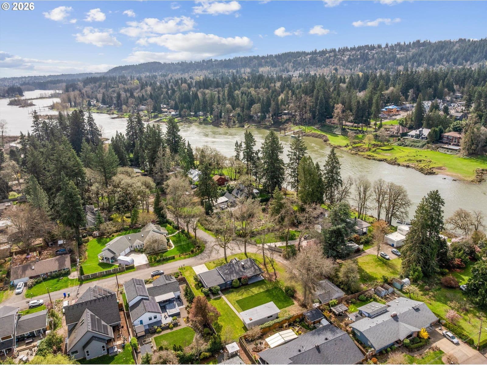 Timeless completely renovated mid-century modern retreat with guest cottage on a half acre, just steps from the Willamette River. This property offers the perfect blend of modern luxury and outdoor lifestyle, with easy access to paddle boarding, kayaking, boating, and fishing right outside your door.The main residence has been completely reimagined from head to toe while preserving its iconic mid-century character. A stunning, oversized living room anchors the home, featuring floor-to-ceiling windows that flood the space with natural light and an original Roman brick fireplace that adds warmth and architectural charm. The designer kitchen showcases custom white oak cabinetry, sleek quartz countertops, and stainless steel appliances—perfectly suited for both everyday living and entertaining.The primary suite is a true sanctuary, offering a spa-like experience with a massive walk-in shower featuring dual shower heads and a soaking tub enclosed in a frameless glass surround. White oak floors run seamlessly throughout the home, tying together the refined, modern aesthetic. Downstairs, the expansive basement offers incredible versatility with a large family room, second fireplace, and a stylish bar with quartz counters—ideal for gatherings. An additional flex space provides the option for a spacious home office or a third non-conforming bedroom.No detail was overlooked in the renovation, with all new electrical, plumbing, sewer line, roof, and HVAC systems providing peace of mind for years to come. Adding even more value and flexibility, the fully detached guest cottage has also been completely updated. Featuring white oak floors, quartz countertops, new HVAC, and roof—this space is perfect for hosting guests, accommodating multigenerational living, or generating income through long- or short-term rental opportunities.Modern upgrades,and an unbeatable location near the river—this is Pacific Northwest living at its finest. Seller is licensed agent in Oregon.