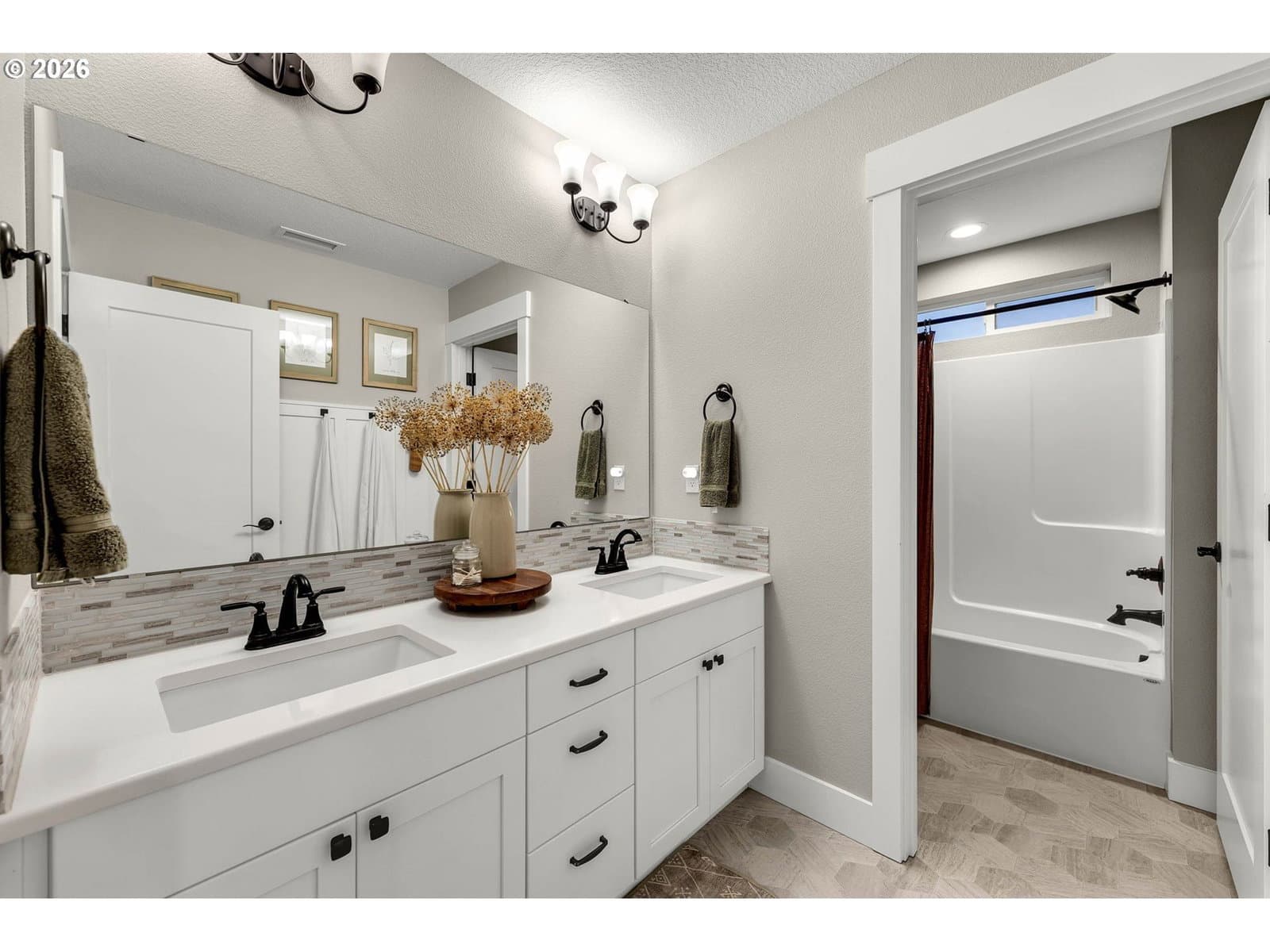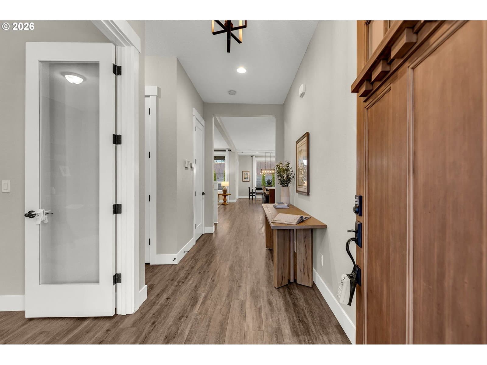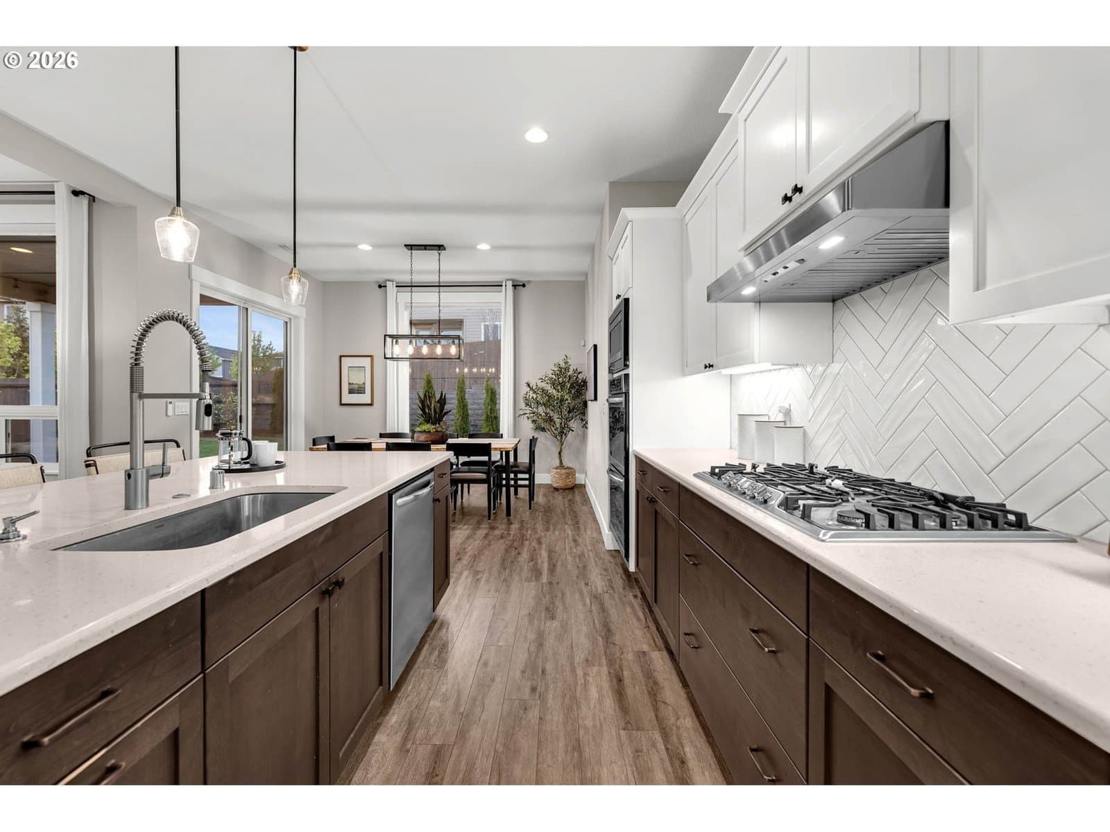 Located in one of Washington’s fastest growing cities, this stunning corner lot home offers space, style, and thoughtful design throughout. Featuring a rare 4-car garage with a convenient man door, this property blends functionality with high-end living. Step inside to an open-concept floor plan with soaring 10-foot ceilings and abundant natural light. The main level includes a dedicated office with custom built-ins, perfect for working from home, while the living room showcases additional custom built-ins and upscale finishes that elevate the space. The gourmet kitchen flows seamlessly into the living and dining areas and includes a custom pantry for added storage and organization. Upstairs, enjoy a spacious bonus room with closet, ideal for media, play, or 4th bedroom. Blackout blinds in all bedrooms provide comfort and privacy. The luxurious primary suite features a spa-like bathroom complete with a freestanding soaking tub and dual-head shower. Outside, the covered back patio creates a perfect year-round entertaining space, complemented by fresh landscaping and a generously sized corner lot. Located within highly sought-after schools and surrounded by Ridgefield’s extensive network of parks and connected trails. This is a home you wont find twice!