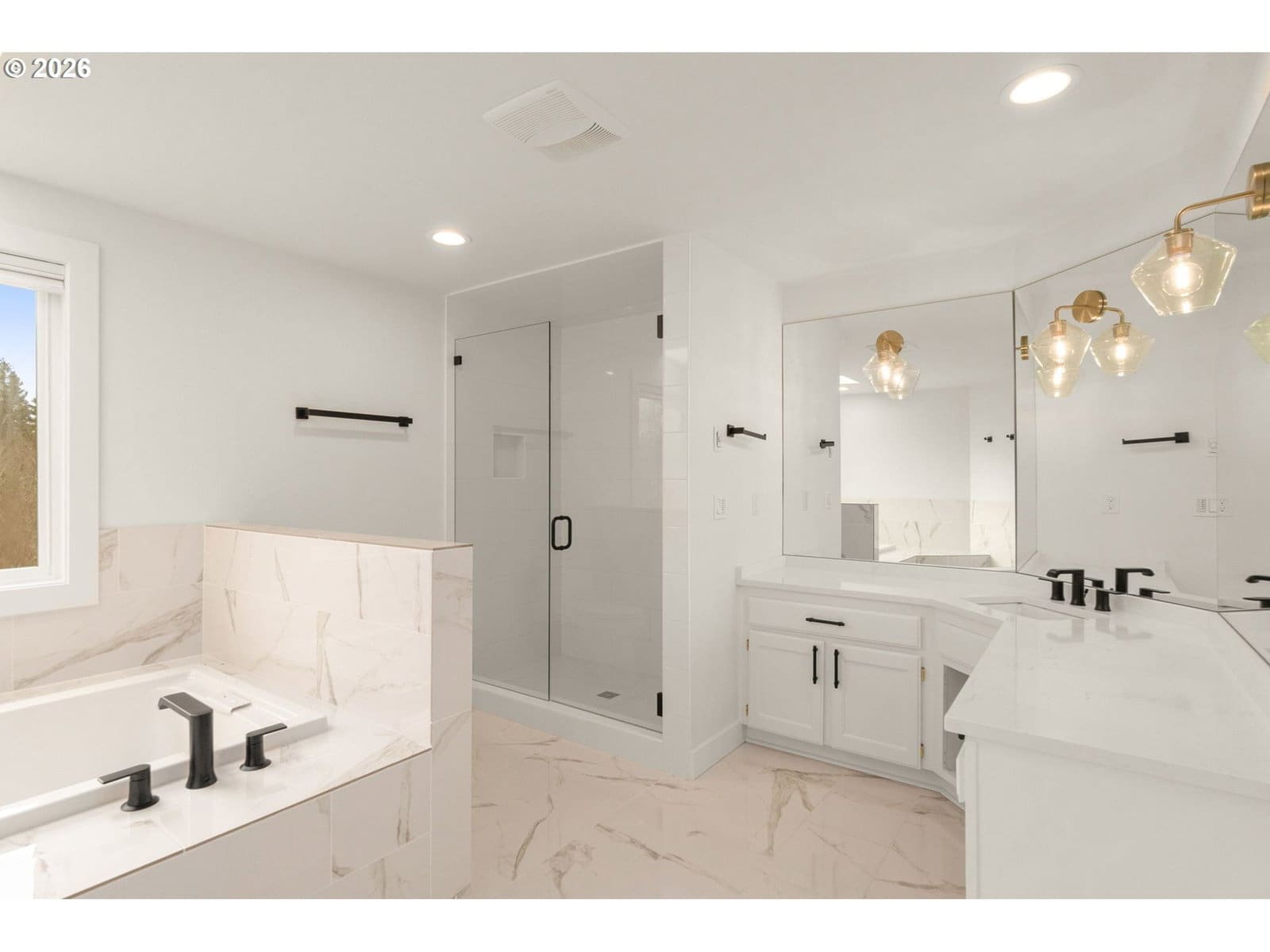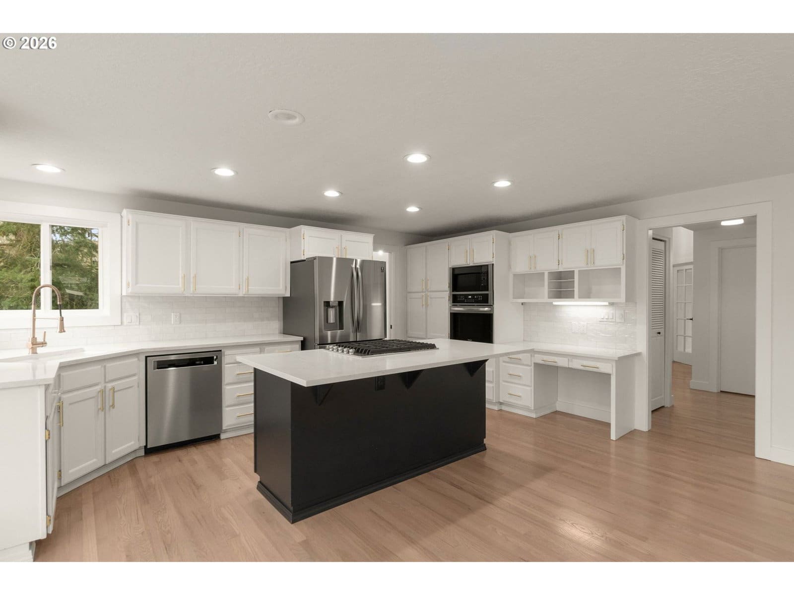 Beautifully updated Bronson Creek retreat. Sought after floorplan with an abundance of natural light. With a remodeled kitchen and primary bathroom this thoughtfully updated and truly move-in ready home blends timeless style with meaningful modern improvements. The recently updated kitchen is a standout, featuring quartz countertops, modern finishes, stainless steel appliances and a layout designed for both entertaining and everyday living. Upstairs, the spacious primary suite offers a peaceful retreat, complete with an updated spa like bathroom showcasing quartz countertops, jetted tub and stylish finishes. Three additional bedrooms provide flexibility for guests, home office space, or hobbies. Major system upgrades add long-term confidence, including a newer furnace and air conditioning system installed in 2023. The architectural composition 50-year roof is approximately 10 years old. In 2023, crawl space improvements included a vapor barrier replacement and ventilation upgrades for enhanced efficiency and durability. Step outside to enjoy the brand-new rear deck completed in 2025—perfect for summer evenings, entertaining, or simply relaxing in your private outdoor oasis that overlooks Bronson Creek and all the wildlife. Located near miles of walking trails & parks. With quality updates throughout and the big-ticket items already addressed, this home delivers comfort, functionality, and lasting value.