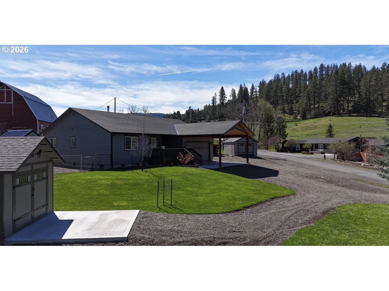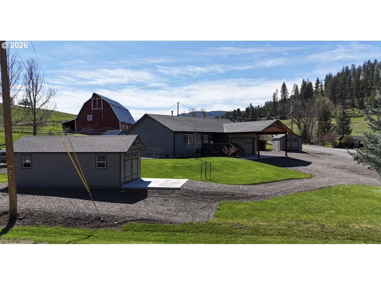 Welcome to your own slice of Eastern Oregon paradise! Nestled on a beautifully maintained property with sweeping valley and mountain views, this well-cared-for Craftsman-style home offers the perfect blend of comfort, functionality, and peaceful rural living. Featuring 3 bedrooms and 2 full bathrooms, the home also includes a spacious oversized garage with covered parking. Two large shop-style sheds provide endless possibilities for storage, hobbies, or workspace, along with ample room to park all your toys. Step outside and enjoy the expansive outdoor space, complete with a beautiful backyard designed for entertaining. Relax on the back porch, start your dream garden, or gather around the cozy outdoor fireplace, perfect for summer evenings with family and friends. Unwind under the covered front entry or simply take in the peaceful surroundings. This property offers both privacy and that true feeling of home the moment you arrive. Recent updates include a newer roof, siding, and windows, along with many additional improvements throughout. This is truly a home you need to see in person to fully appreciate.