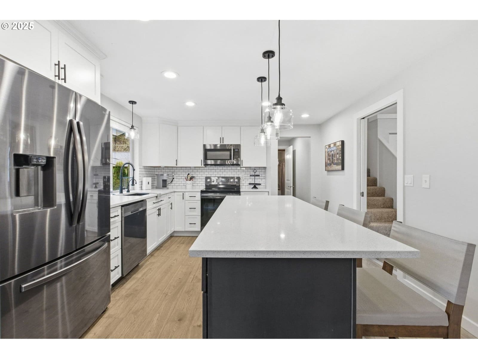 Fantastic Thurston Home! Situated on a large lot with ample RV parking, this beautifully remodeled property offers light, bright, and charming living throughout. The updated kitchen features a spacious island and sleek stainless steel appliances, perfect for cooking and entertaining. Enjoy a generous fully fenced backyard complete with lush grass, underground sprinklers, and a 24' x 13' wood deck ideal for outdoor gatherings. A 12' x 10' wood shed provides flexible use as a shop, storage, or playhouse. Inside, the versatile downstairs bonus/flex room offers the potential for an additional bedroom, office, or hobby space. This well-maintained home combines comfort, function, and fantastic outdoor amenities, ready for its next owner!