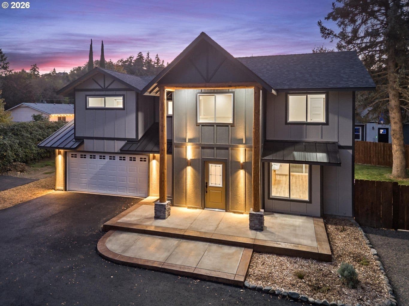 Modern New Construction Home in Grants Pass - Stunning Design Meets Natural Beauty Be the first to own this beautifully built modern home in the heart of Grants Pass! Featuring 3 spacious bedrooms, 2.5 baths, and over 1,700 sq ft of thoughtfully designed living space, this property combines clean contemporary finishes with timeless natural materials. You'll be captivated by the old-growth Douglas Fir pillars that frame the front of the home - a striking architectural detail that sets the tone for the craftsmanship found throughout. Inside, enjoy concrete countertops, open-concept living, beautiful flooring, and tile showers. The primary bedroom offers partial mountain views, providing a peaceful ambiance. Step outside to a fully fenced backyard with dual gated access - perfect for privacy, RV, pets, or entertaining.