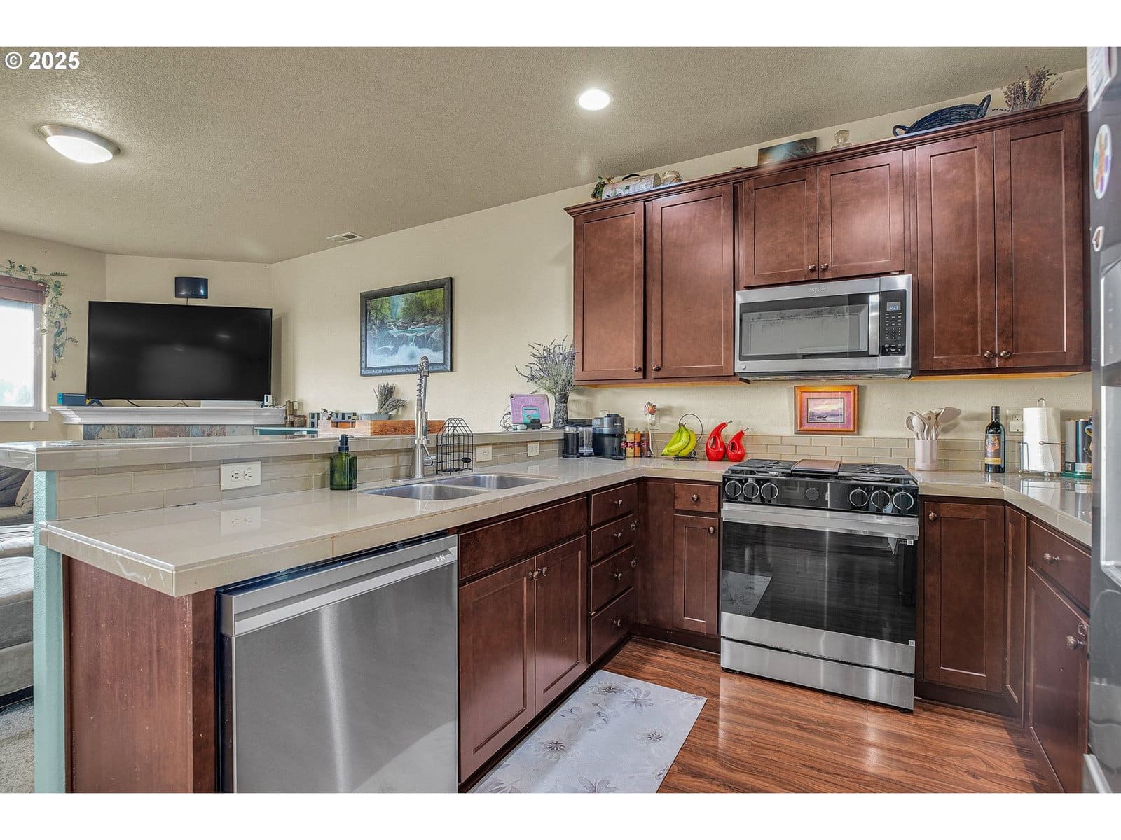 Welcome to small town living in North Plains with quiet streets and wide open country views. This 3 bed, 2.5 bath home has 2230 sq ft of living space, including a full third floor bonus area. The main level has an open living and kitchen layout with a gas fireplace, eating bar, and a nook style dining space. The kitchen has stainless steel appliances, including a new gas range, new dishwasher, and new overhead microwave. The second floor includes two bedrooms plus a primary suite with French doors, a walk in closet, double sinks, and a walk in shower. The entire third floor is a large family or bonus room, giving lots of options for play, office, media, shared space, or storage. Upper floors look out over nearby farmland, and the fenced backyard has a covered patio for year round outdoor use. The roof was replaced in 2024. All appliances stay, including the washer and dryer. Oversized 1 car garage provides extra storage space. This location is a short drive to Hillsboro, tech hubs, shopping, schools, and parks, while still feeling quiet and country. Bring your ideas and make this home work for you.