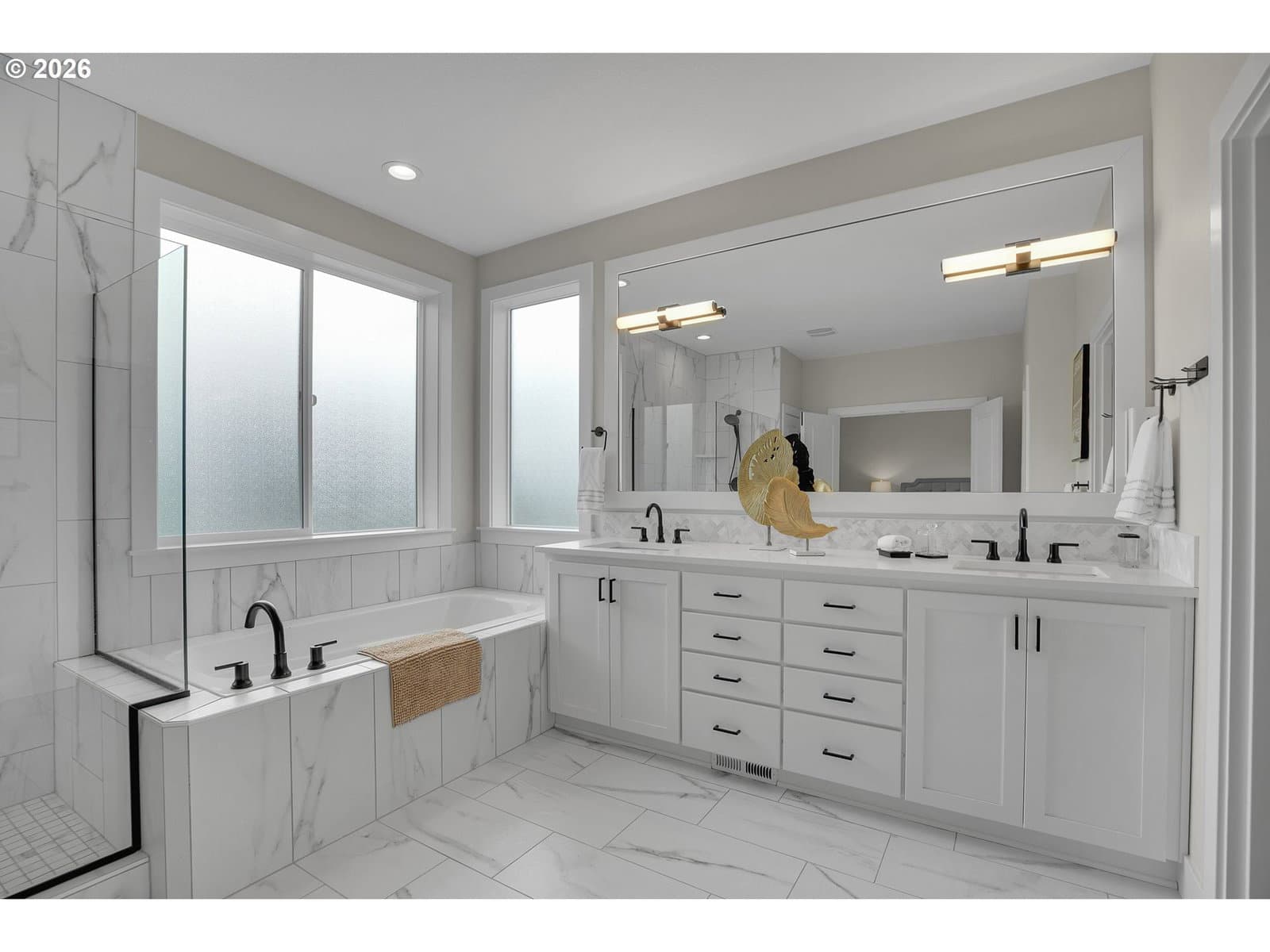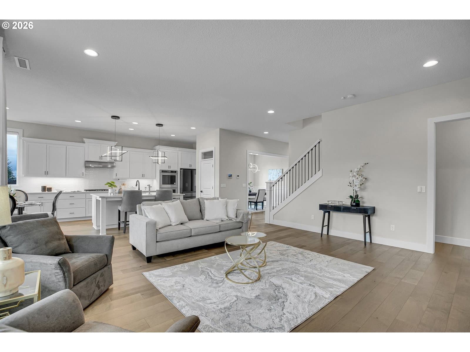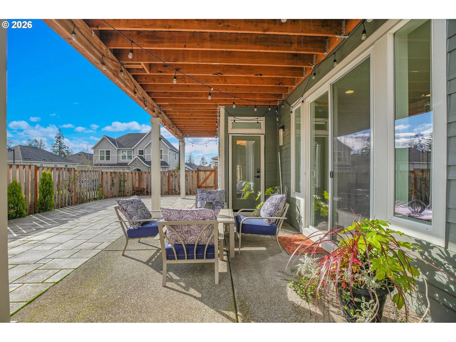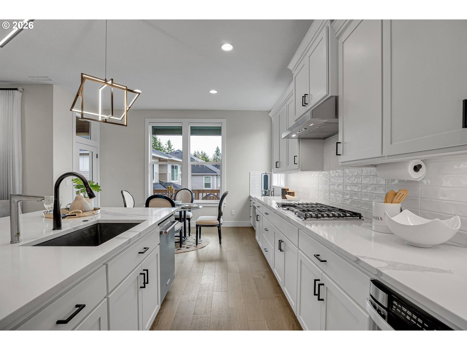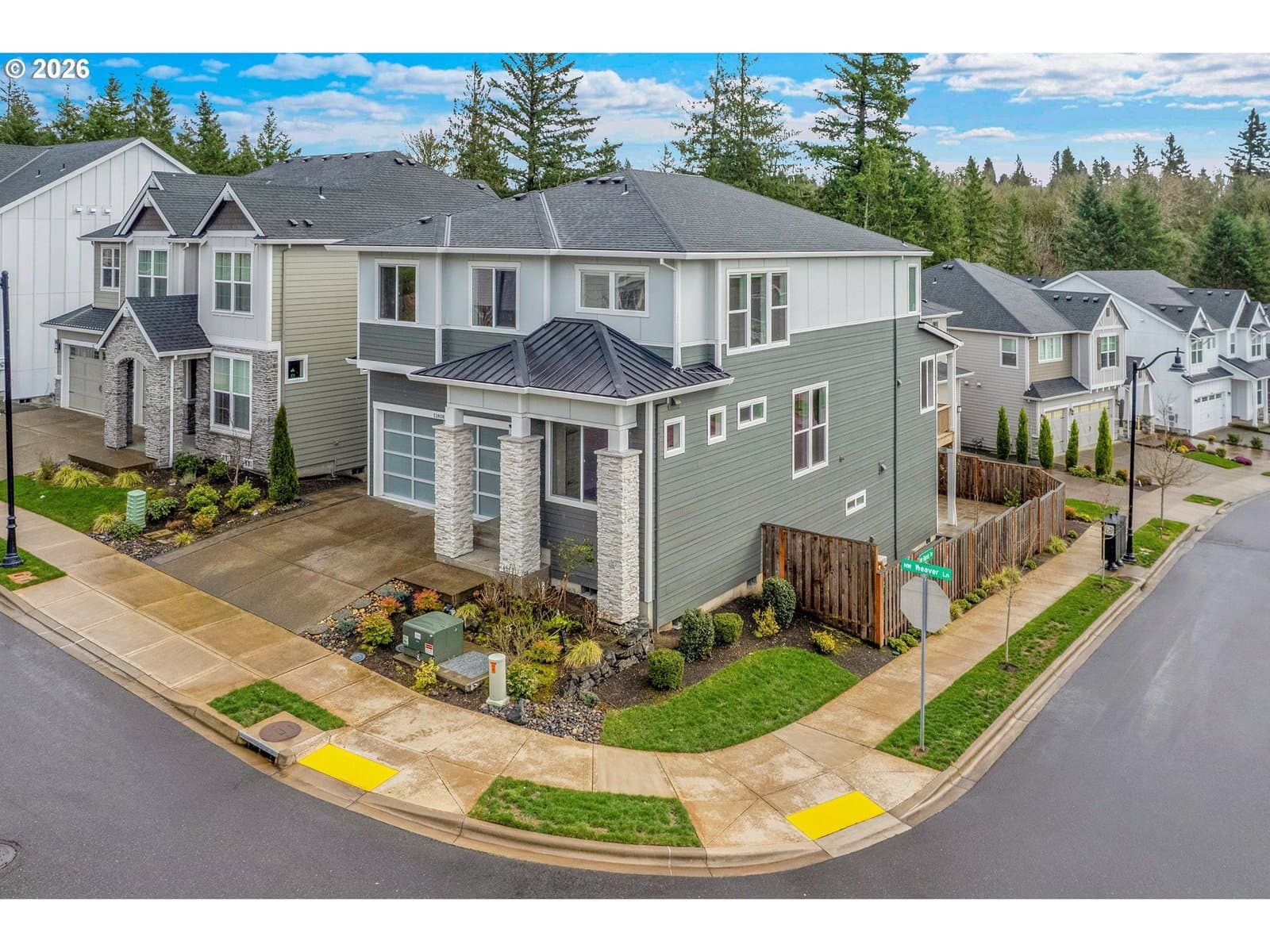 Experience refined living in this gorgeous Earth Advantage Certified daylight basement home, ideally situated on a desirable corner lot in Creekview Ridge—a community where luxury meets nature, nestled in the sought-after Bonny Slope area. Built in 2022 by award-winning local builder Noyes Development, this home showcases exceptional craftsmanship and high-end finishes throughout. Step into a spacious open-concept floor plan featuring a generous living room with a gas fireplace, elegant tile surround, and custom built-ins. The gourmet kitchen is a chef’s dream, boasting quartz countertops, an oversized island with seating, stainless steel appliances, double ovens, built-in range with hood, soft-close cabinetry, a pantry, and an adjacent nook with access to the covered deck—perfect for indoor-outdoor living. A formal dining room provides additional space for entertaining, while a den and full bathroom on the main level add convenience and flexibility. Soaring 10-foot ceilings and expansive windows flood the main living areas with natural light, enhancing the airy and inviting atmosphere. Upstairs, the luxurious primary suite features a spa-inspired bath with quartz countertops, dual sinks, a walk-in tiled shower, soaking tub, and a spacious walk-in closet. Three additional bedrooms, a full bathroom, and a laundry room complete the upper level. The finished daylight basement offers a large bonus room with a second gas fireplace, a fifth bedroom with separate entry, and a full bath—ideal for guests or multi-generational living. The low-maintenance backyard includes a paver patio, perfect for year-round enjoyment. This home boasts over $75,000 in high-quality upgrades from the builder and after move-in. For added comfort and future-ready living, the home is equipped with a pre-plumbed central vacuum system with Hide-A-Hose, EV charger readiness, and solar-ready infrastructure—offering long-term efficiency and adaptability. This exceptional home is a must-see!