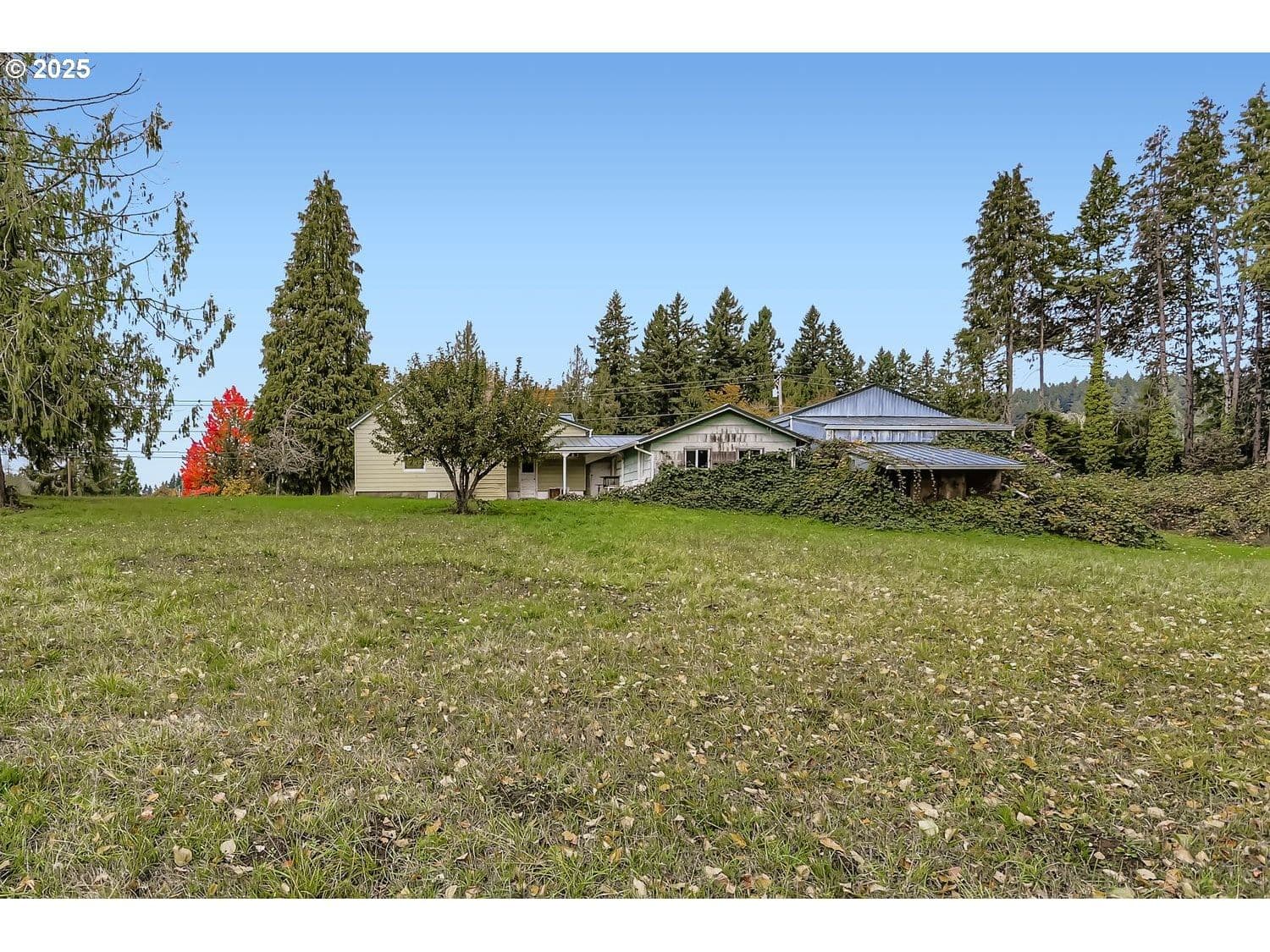 Beautiful property on 2 tax lots sold together but the home is a fixer and is sold as is. The 2 tax lots are recorded under one deed. Buyer to do their own Due Diligence but the 2 lots must be sold together. Please check with Clackamas County for questions. Seller will not do any repairs. Newer metal roof, and rebuilt woodburning fireplace, and newer windows. 25 X 50 shop wired 220 and cement floor. Detached garage has toilet. Bring your imagination. Just a few minutes to shopping and I 205. Square footage is per the county records.