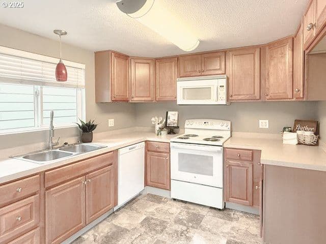 Move-In Ready! Beautifully updated single-level home offers comfort and convenience with a spacious living area featuring laminate flooring and modern recessed lighting. Enjoy brand-new carpet in all bedrooms, each outfitted with ceiling fans for year-round comfort. The primary suite includes a large walk-in closet and bathroom with shower. Additional upgrades include a newer roof, energy-efficient vinyl windows, and an indoor laundry area. Outside, the property features a large fenced yard, detached two car garage and a paved entry ramp, providing easy access for guests or enhanced mobility. Easy to show and ready to sell—don’t miss this opportunity!