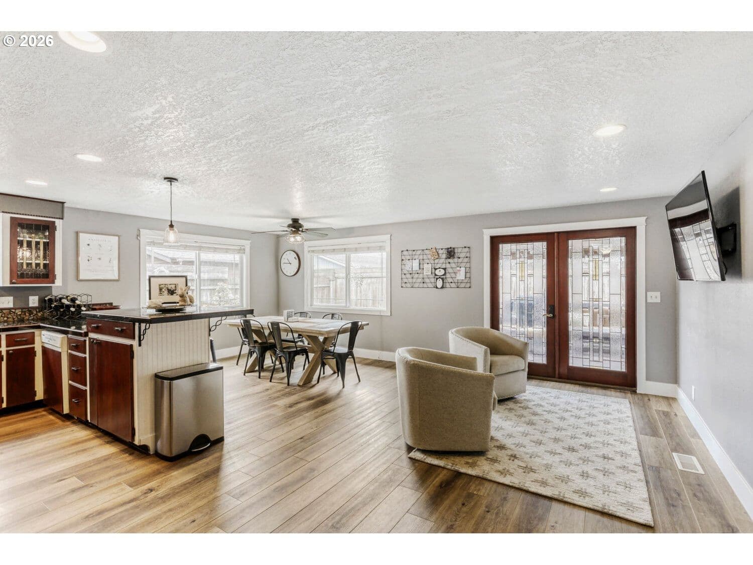 OPEN HOUSES: FRI 04/03 2-6PM, SAT 04/04 11-3PM. Well-maintained single-level ranch-style home featuring 3 bedrooms and 2 full bathrooms in a quiet, established Canby neighborhood with no HOA. This property offers excellent flexibility and strong potential as a primary residence, first-time home purchase, or short-term or long-term rental investment. Inside, you'll find a bright and inviting layout with new vinyl flooring, abundant natural light, and two spacious family rooms providing multiple living areas perfect for entertaining, relaxing, or creating a home office, media room, or bonus space. The home has also been updated with a new heat pump installed in 2024 and a new hot water heater in 2025, offering added efficiency and peace of mind. Step outside to enjoy a large covered Trex deck overlooking a fully fenced backyard with great privacy, a fire pit, and beautifully maintained landscaping ideal for outdoor gatherings and year-round enjoyment. The property also features a large 2-car garage, covered parking ideal for boat or RV storage, plus an outdoor shed and workshop offering additional storage and project space. Conveniently located close to schools, parks, and the city pool, this home combines comfort, versatility, and long-term value in a desirable neighborhood.