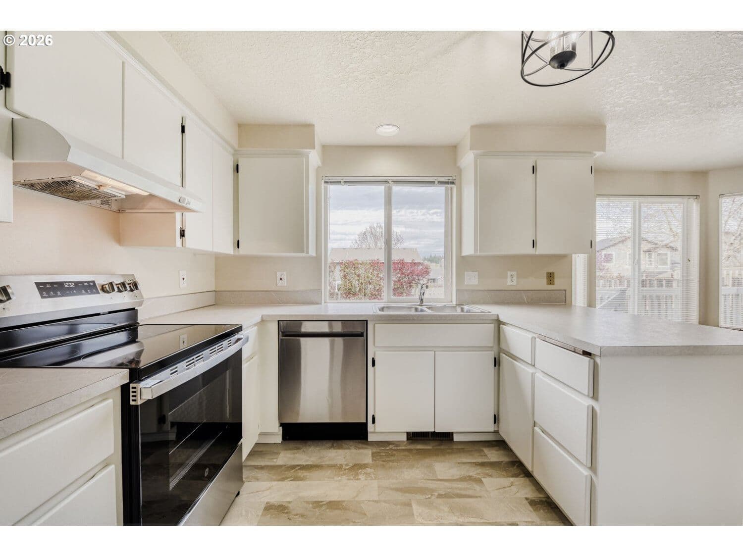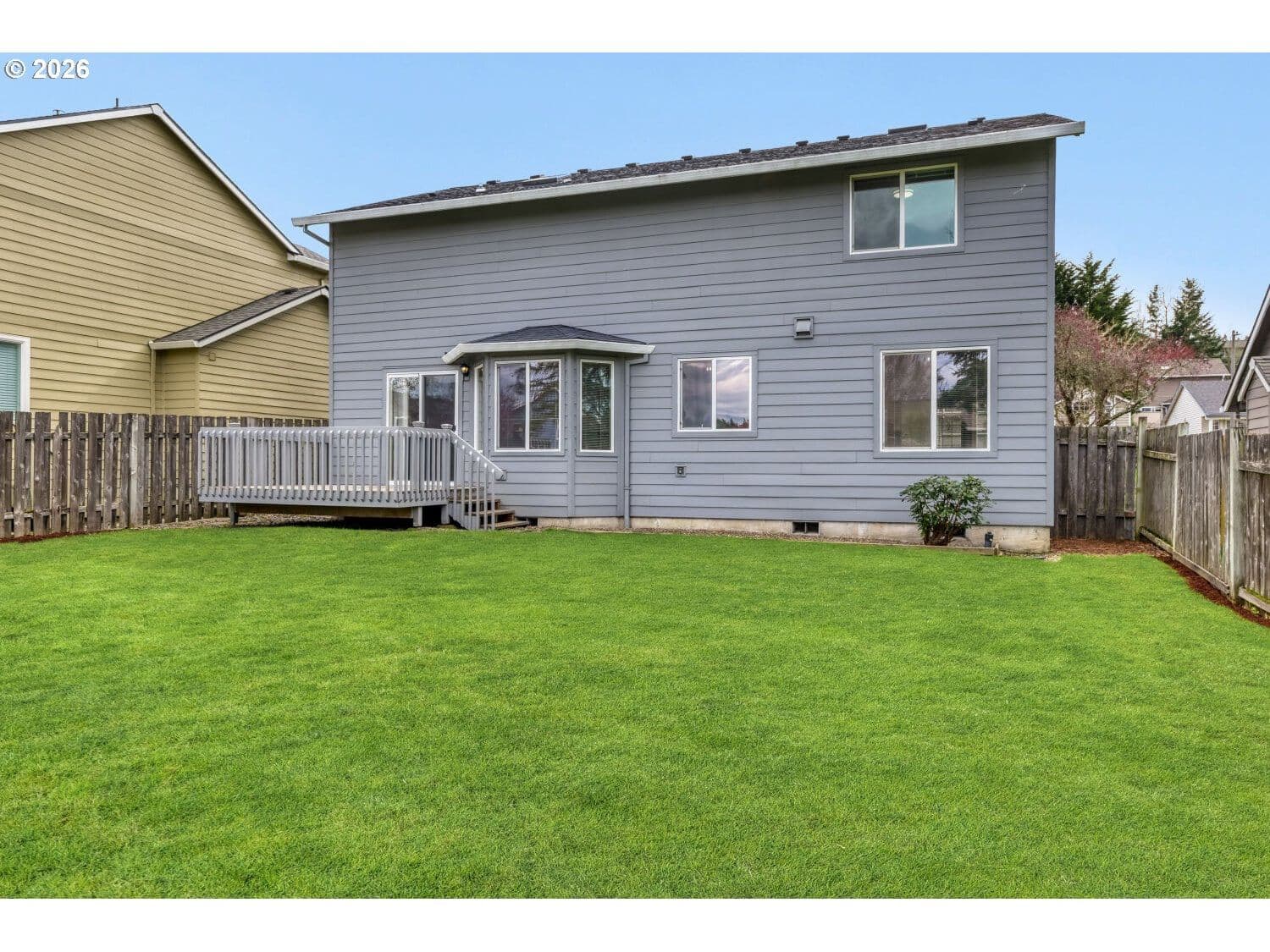 On the market for the first time, this highly sought-after Bull Mountain Meadows plan offers a desirable layout with four bedrooms, large room sizes, and numerous vinyl windows and skylights for great natural light. It's been meticulously maintained and thoughtfully updated with no detail overlooked. Highlights include a brand-new composition roof, fiber cement siding, all-new flooring, new fixtures, recent water heater, and more! Open-concept kitchen offers new countertops, freshly painted white cabinets, new flooring, appliances including new SS dishwasher and range, and a bayed dining nook. The kitchen is open to the family room, featuring a gas fireplace and slider to the deck and backyard beyond. Deluxe primary suite includes vaulted ceilings, walk-in closet, skylight, updated vanity with dual sinks, and walk-in shower. There are three more generously sized bedrooms upstairs, plus a second updated full bathroom and convenient laundry closet. Great lot with fenced backyard offering deck, irrigation, and mature landscaping. Unbeatable location, just minutes from Progress Ridge and its outstanding amenities. Great Beaverton schools!