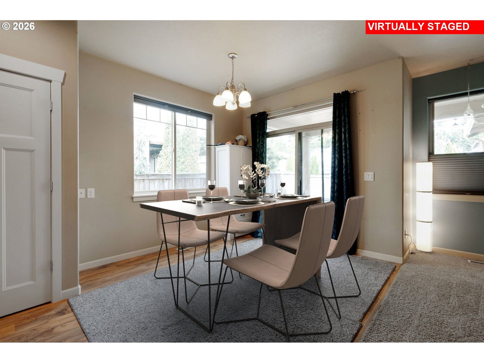 Step into this Enerygy Star move-in-ready home just minutes from downtown Battle Ground!Two story with engineered hardwood floors welcomes you into an open concept living room with a cozy gas fireplace, built-in bookshelves & adjacent dining area perfect for gatherings and entertaining. Kitchen has ample cabinet space, granite countertops and a pantry. There is also a main level bedroom or use as an office? Upstairs, three spacious bedrooms including the primary ensuite with a large walk-in closet, double vanity sinks, garden tub and a step-in shower. Upstairs also has a large flex space for another sitting area/game space/workout area?? Fully fenced back yard with a covered patio. Attached 2 car oversized garage with an oversized driveway for parking. Don't miss out on this home that offers comfort, space and convenience!