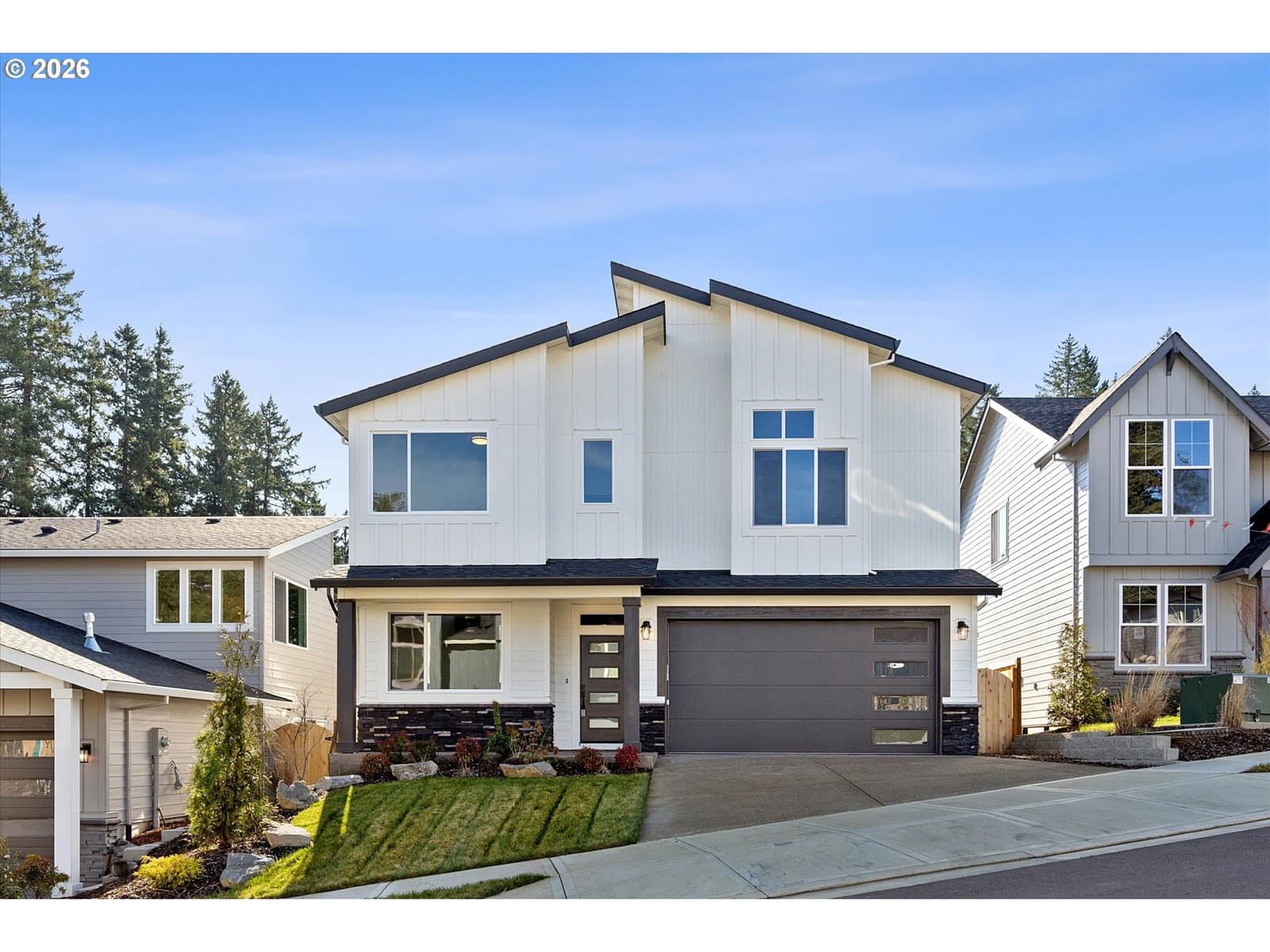4days on marketExperience this stunning modern daylight ranch home in sought-after Hoodview Heights, featuring a Mt. Hood view and high-end finishes throughout. The open-concept main level showcases soaring high ceilings, 8-foot doors and engineered hardwood flooring across the main living areas. The gourmet kitchen is designed for both style and functionality complete with stainless steel appliances, a spacious island with accent lighting, quartz countertops and full quartz backsplash, plus an impressive 8' x 6' butler’s pantry with a convenient pot filler. The great room is perfect for entertaining highlighted by a gas fireplace with custom accent lighting. Step outside to the expansive 400 sq ft main-level composite deck, ideal for enjoying outdoor living and scenic views.The luxurious primary suite offers a private retreat with dual walk-in closets, a spa-like ensuite featuring a curbless walk-in shower and direct access to the nearby laundry room for added convenience.The daylight lower level includes a large family room, two additional bedrooms and a bathroom with shower perfect for guests or multi-generational living. Enjoy the additional 250 sq ft lower-level composite deck overlooking the fully landscaped and fenced backyard with sprinkler system.Additional features include professionally landscaped front and back yards, modern finishes throughout and a prime location.Est completion May 2026. Hoodview Heights is open Saturday and Sundays 1 to 4.