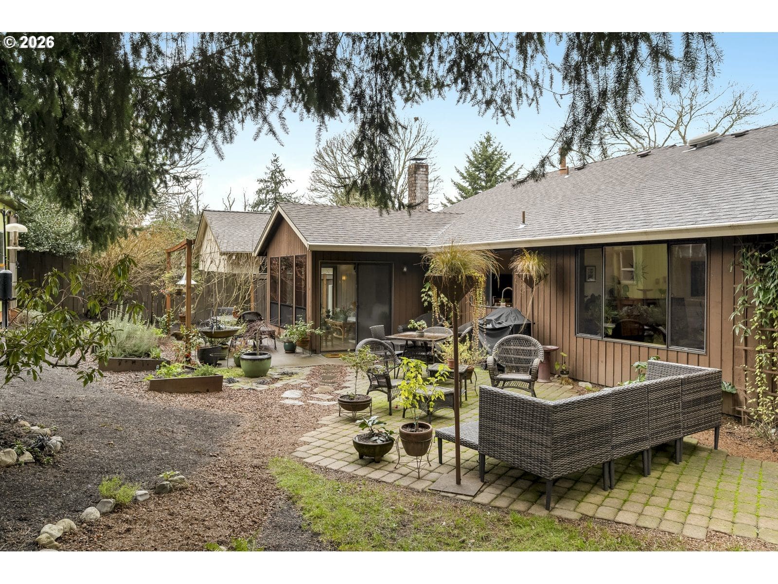 Back on market thru no fault of property. Warm and inviting single-level home on a private corner lot in the heart of Tigard. Designed for comfortable everyday living, this spacious 3-bedroom, 2-bath home offers a generous living room, an open kitchen and family room layout, and a formal dining space—perfect for both daily life and gathering with friends. The cozy family room features a gas fireplace and built-in bookshelves, creating an ideal spot to unwind. Fresh interior paint gives the home a light, refreshed feel, and recent updates include a new heat pump, furnace, and hot water heater for year-round comfort. The primary bedroom faces the backyard and includes double closets and an en-suite bath. A sunny sunroom adds flexible bonus space—perfect for morning coffee, afternoon reading, or simply enjoying the peaceful surroundings. Outside, the fully fenced backyard feels private and serene, with a patio and cozy sitting areas ideal for relaxing, entertaining, or watching the birds. The location truly can’t be beat—central to downtown Tigard, close to restaurants in Lake Oswego, shopping at Bridgeport Village, easy freeway access, and a quick drive to wine country. A wonderful opportunity for easy single-level living in a fantastic central location and neighborhood.