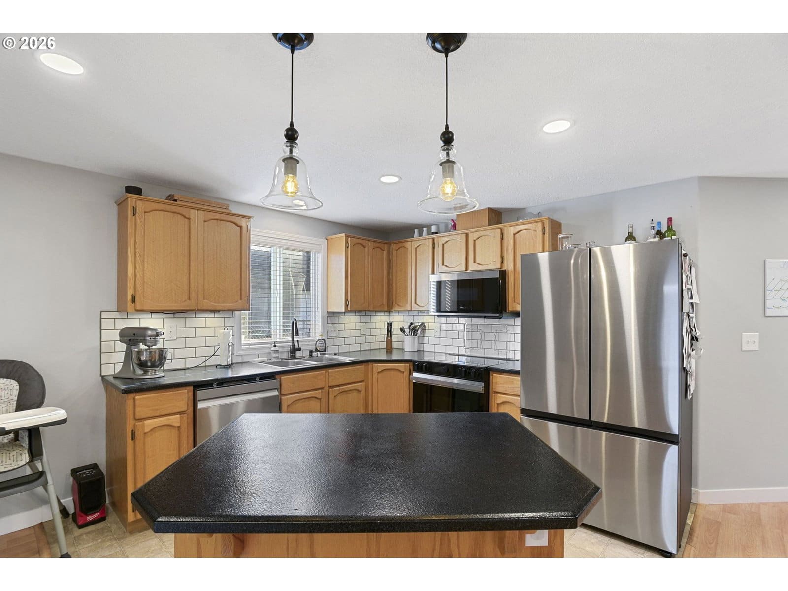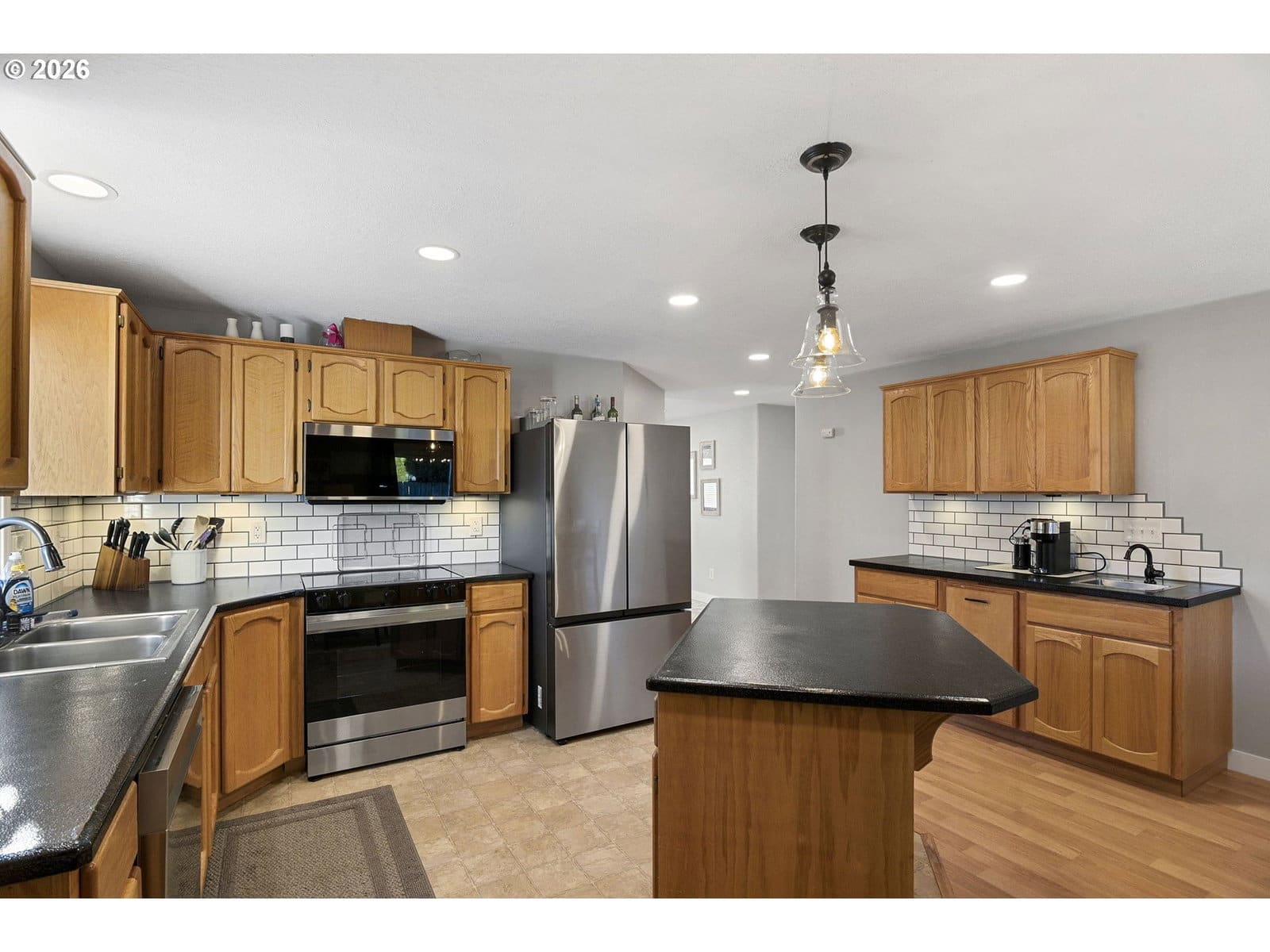This home showcases a spacious and open layout, abundant with natural light that creates a warm and welcoming ambiance. The neutral color palette throughout allows for easy personalization. The kitchen features ample cabinetry, new appliances and a tile backsplash, complementing the open concept design. A cozy fireplace adds charm and comfort to the living area. The home offers abundant storage space, with a well-organized layout that maximizes functionality. The exterior has ample yard space and RV parking. The exterior is well-maintained, featuring a fully fenced yard for privacy and security. Recent updates include a newer roof, water softener/filtration, and air conditioning system, ensuring a comfortable and energy-efficient living environment. The great location provides convenient access to the surrounding area