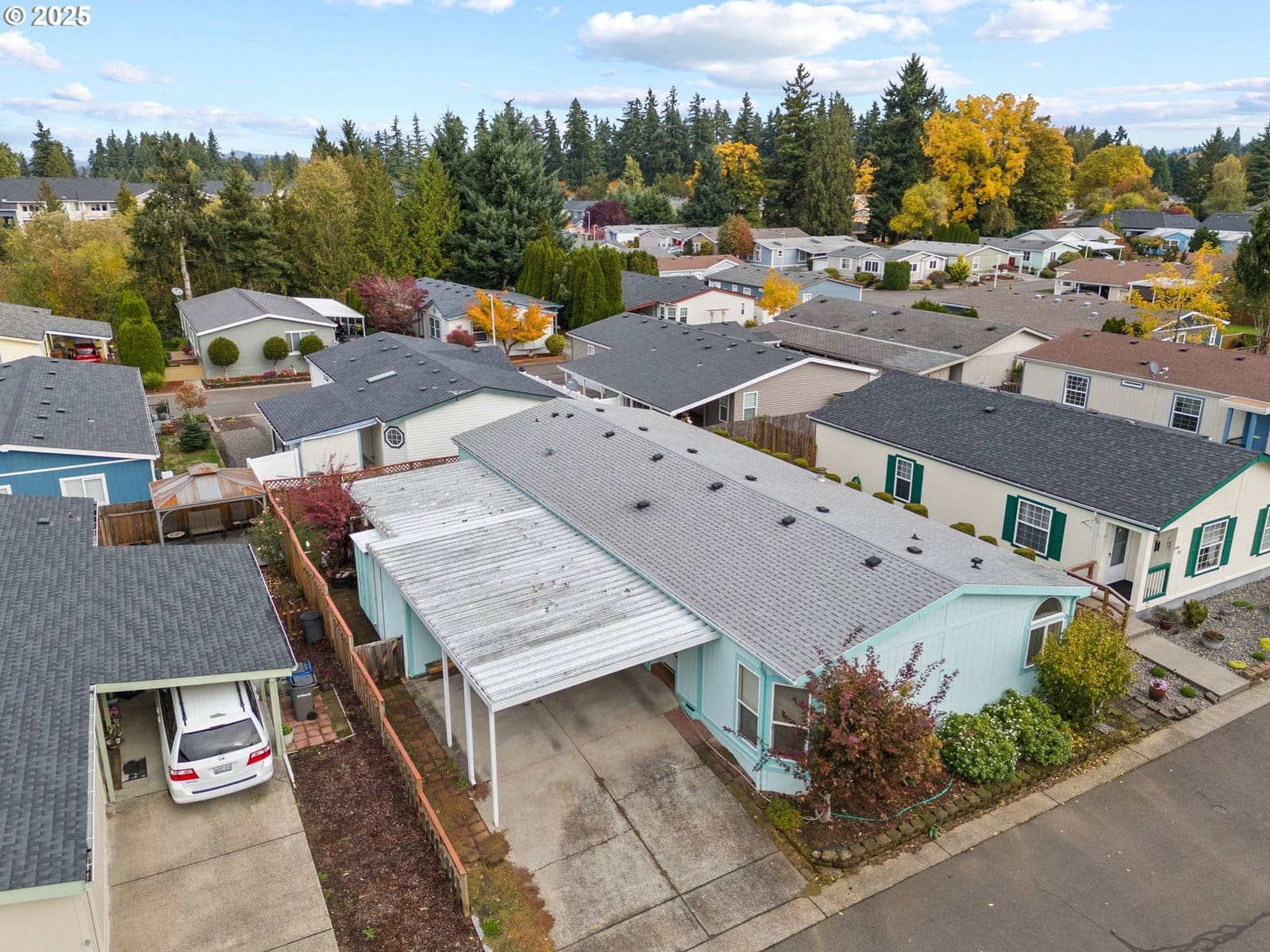 This spacious home offers comfort, functionality, and great value in a peaceful 55+ park with low space rent that includes sewer service. Inside, you’ll find 3 bedrooms plus a versatile den—perfect for an office or craft room—along with a formal dining area and a large, open eat-in kitchen featuring a wall oven and abundant counter space. The generous mudroom with laundry provides easy access to the covered back porch.Enjoy outdoor living with a fully fenced yard, a powered workshop, and plenty of parking with a large carport that fits two vehicles plus extra driveway space. Whether you’re downsizing or seeking a quiet, friendly community, this home has all the right features for comfortable living!