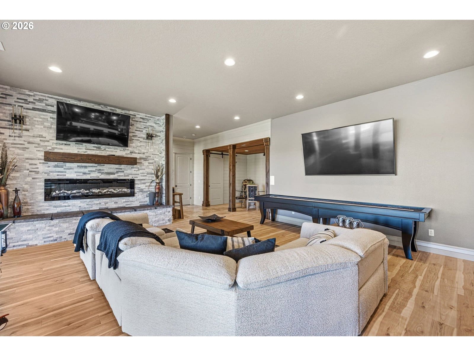 This is the one! Experience vacation living year round. Amazing custom built masterpiece in Beaver Lake. Epic views, luxury living with relaxing spa-like feel. Something for everyone. Open gourmet kitchen, soaring Great Room with dramatic views, incredible primary suite, spacious ensuite guest bedrooms, amazing second living space with second kitchen and party room. Separate spacious gym, tons of dedicated storage, six car garage, spectacular outdoor living oasis with Pickleball & basketball courts! Vacation year round!
