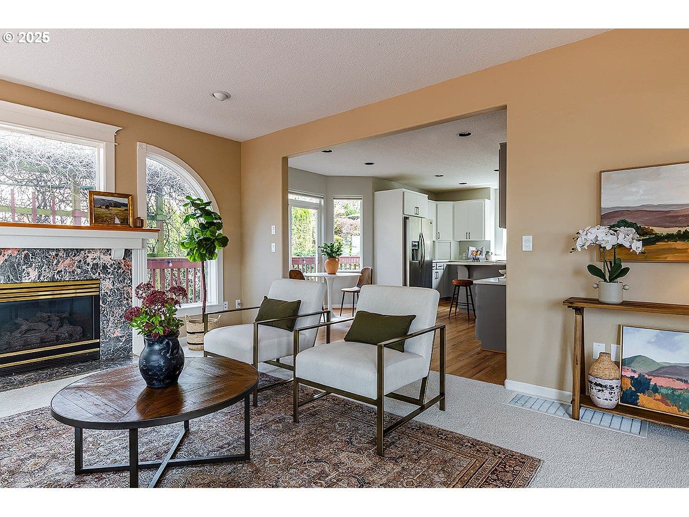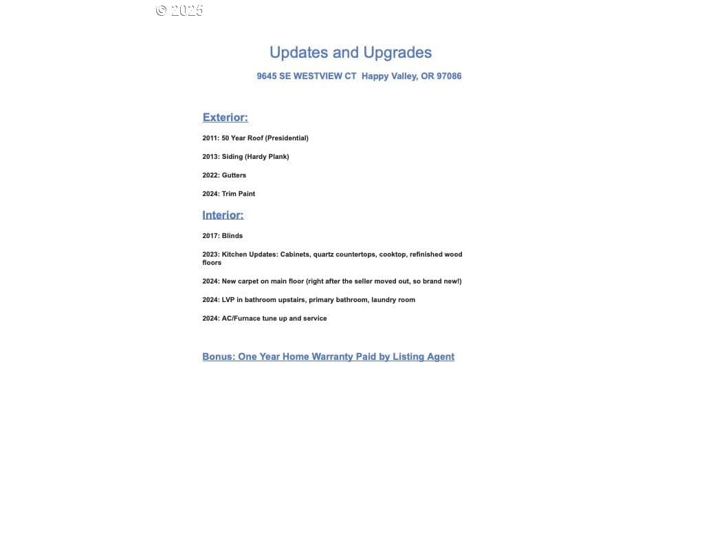 OPEN HOUSE SUNDAY 2/15 FROM 12-2! HUGE PRICE DROP! One Owner, Premium Upgrades, Home Warranty Included and all appliances to stay with home! This home is situated in a highly sought-after neighborhood and perfectly balances modern upgrades with timeless design. Nestled in the heart of Happy Valley, this stunning one-owner NW Contemporary home offers an exceptional blend of style, comfort, and thoughtful updates. Boasting a newer presidential roof and newer Hardie plank siding, this home is built for longevity and low maintenance. From the moment you step inside, you're welcomed by a grand marble entry, soaring ceilings, and a seamless flow of hardwood floors and brand-new plush carpeting. The recently renovated kitchen features gorgeous quartz countertops, new cabinetry, modern appliances, rich hardwood flooring, and a sliding door to the almost full wrap around back deck that creates an ideal space for cooking and gathering. On the main floor, you have an open floorpan from the two living spaces and dining area that are centered around beautiful landscapes and picture windows along side a sliding door to the deck, perfect for peaceful nights or lively hosting. The first floor bedroom, currently used as a den, could be used for main floor living or office/flex space boasts beautiful French doors, custom built-ins, new carpet, and elegant crown molding. The three-car garage alongside additional exterior parking provides ample room for storage, workspace, or perfect if you are a car lover! The secondary floor has three more bedrooms including a massive primary suite with jetted tub and walk in closet. The laundry room is situated perfectly in between all three room. Last but not least, don't miss the huge bonus space on the lower level! Complete with carpet and exterior access, this could be a great opportunity for an ADU, multigenerational living, or just a fun room for hobbies!