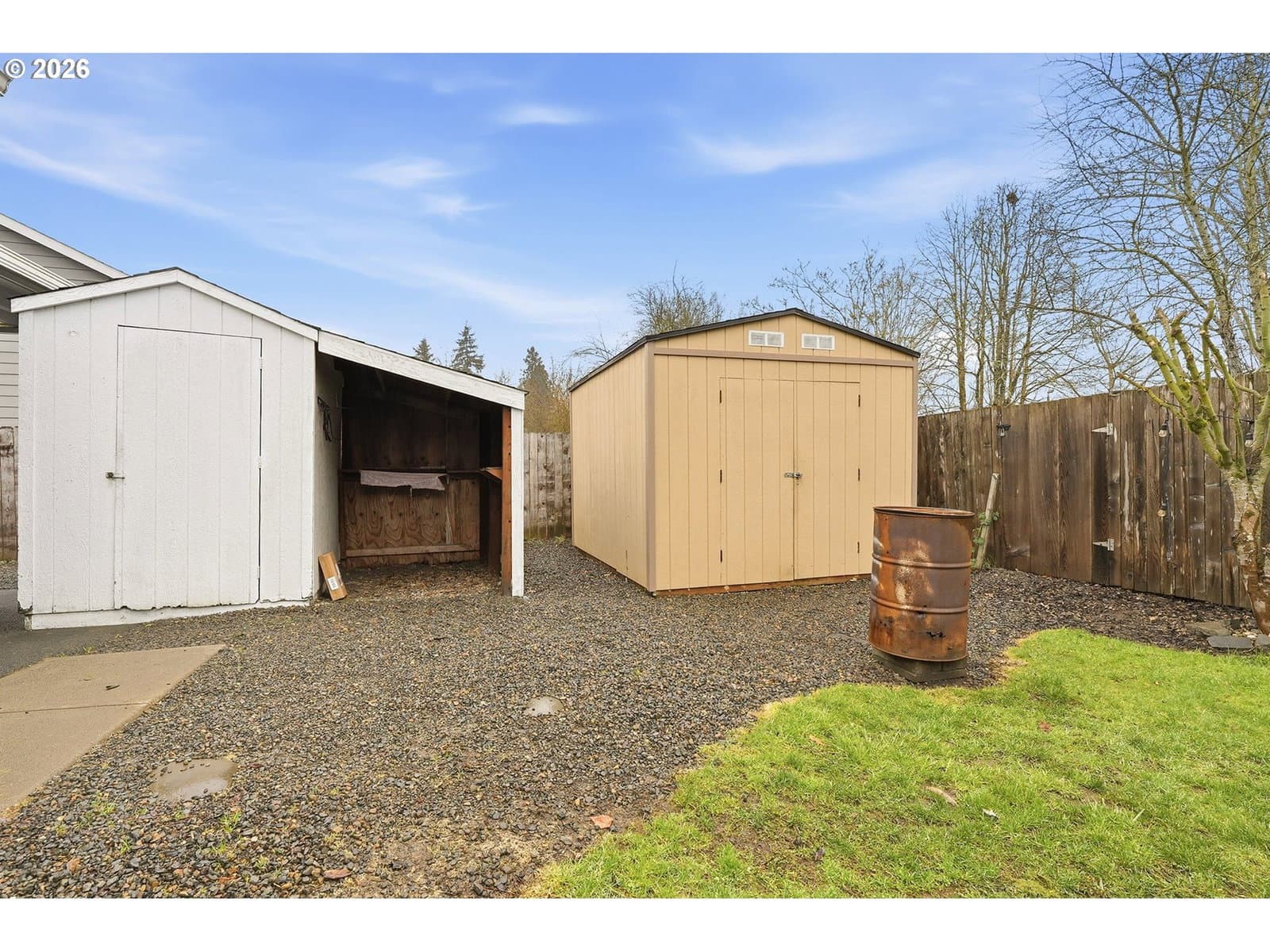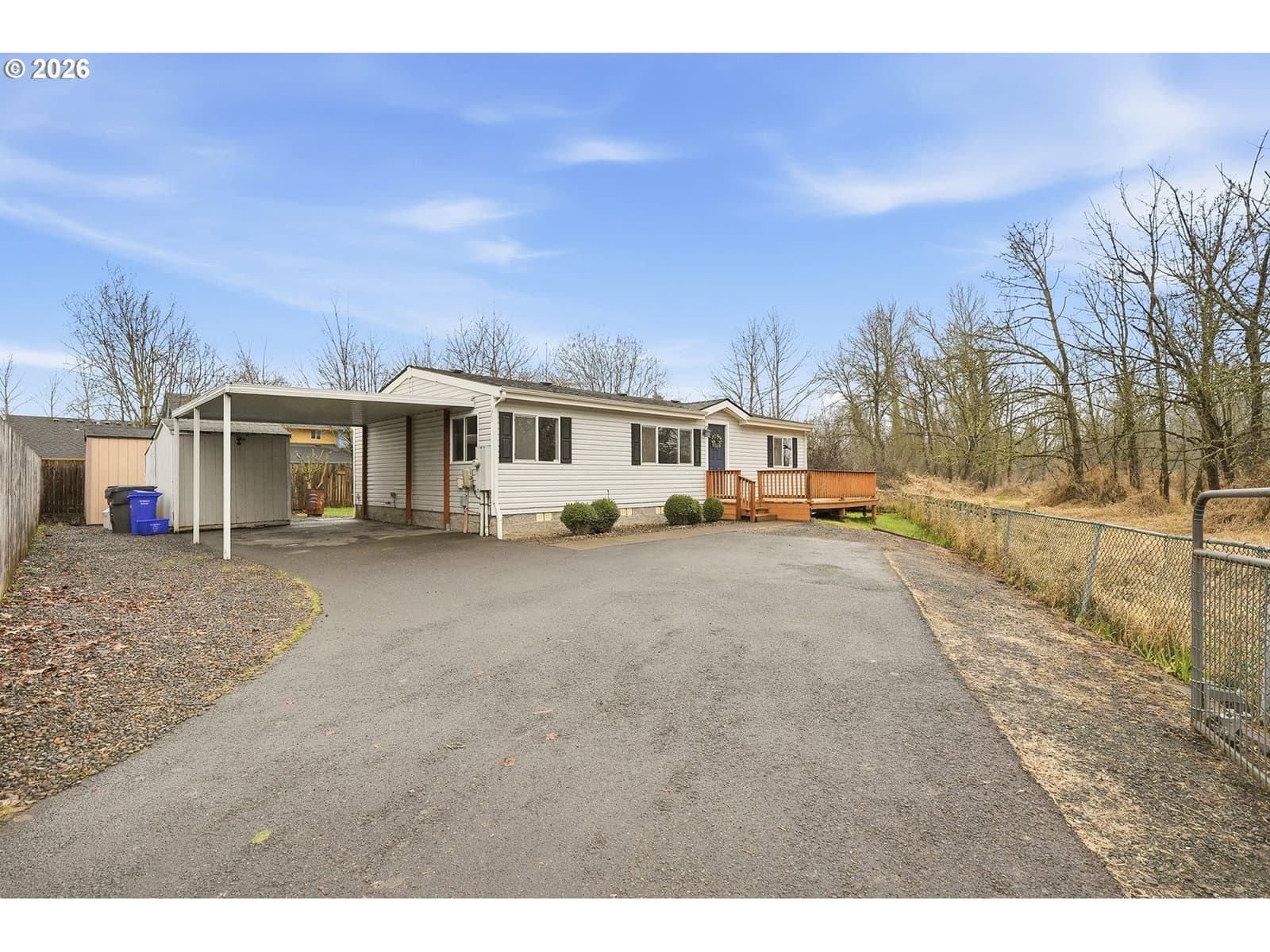 Tucked away on a quiet dead-end road in Molalla, this well maintained manufactured home sits on its own land with no space rent and no HOA, offering the freedom and flexibility you’ve been looking for.Featuring 3 bedrooms and 2 bathrooms, this home offers a comfortable and functional layout with thoughtful updates throughout. Both bathrooms have been refreshed, including a beautifully updated primary bath and the spacious primary bedroom.The light filled living area flows seamlessly into the kitchen and dining space, creating an easy, everyday living environment. Updated finishes and clean, neutral tones make it move-in ready while still offering room to personalize.Step outside to enjoy a fully fenced yard, perfect for pets, gardening, or simply relaxing outdoors. The property also includes a tool shed for extra storage, covered parking, and additional space for a trailer, RV, or extra vehicles - a rare and valuable feature.Located just minutes from shopping, parks, and everyday amenities, this home combines small town charm with practical convenience.Affordable, functional, and move-in ready, this Molalla property is a fantastic opportunity to own your own land with room to live, work, and play.