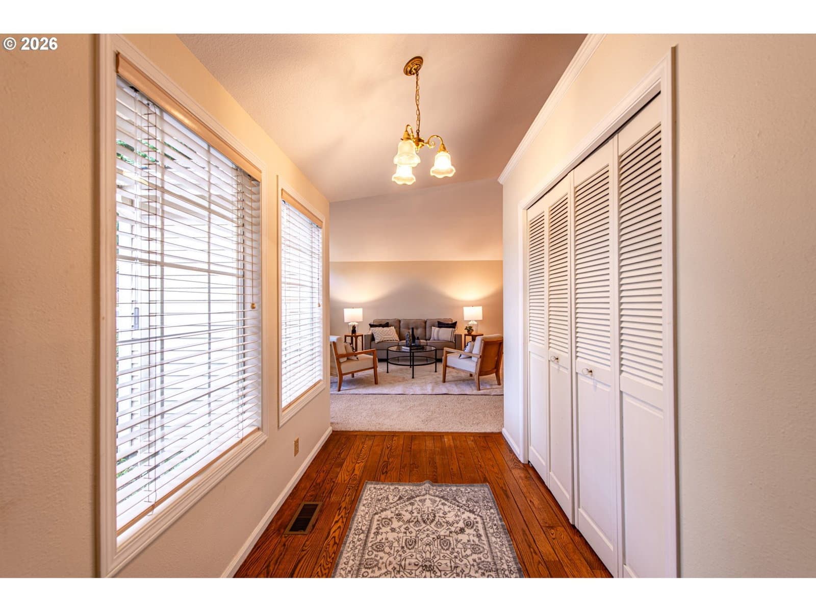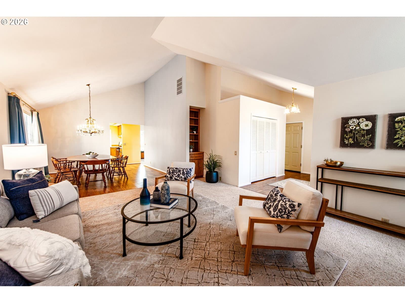 Tucked away on beloved Happy Lane, this exceptional single-level home sits in a quiet dead-end street in the highly sought-after Ferry Street Bridge neighborhood. Light and bright with abundant windows, the open entry welcomes you into inviting living spaces featuring vaulted ceilings, hardwood floor entry, a cozy fireplace, and custom built-ins. The kitchen opens seamlessly to both the living and family rooms, with skylights enhancing the airy feel. Enjoy a spacious dining room, generous laundry with excellent storage, a hall bath with double sinks, and a serene primary suite with vaulted ceilings, a wall of closets, and a private bath. Outside, the fully fenced and beautifully landscaped backyard offers a covered Trex-style deck, tool shed, and an oversized two-car garage with workbench and storage. Heat pump is less than 2 years old. Close to shopping and parks. New roof to be installed prior to close of escrow. OPEN HOUSE Saturday 2/21 from 1pm-3pm