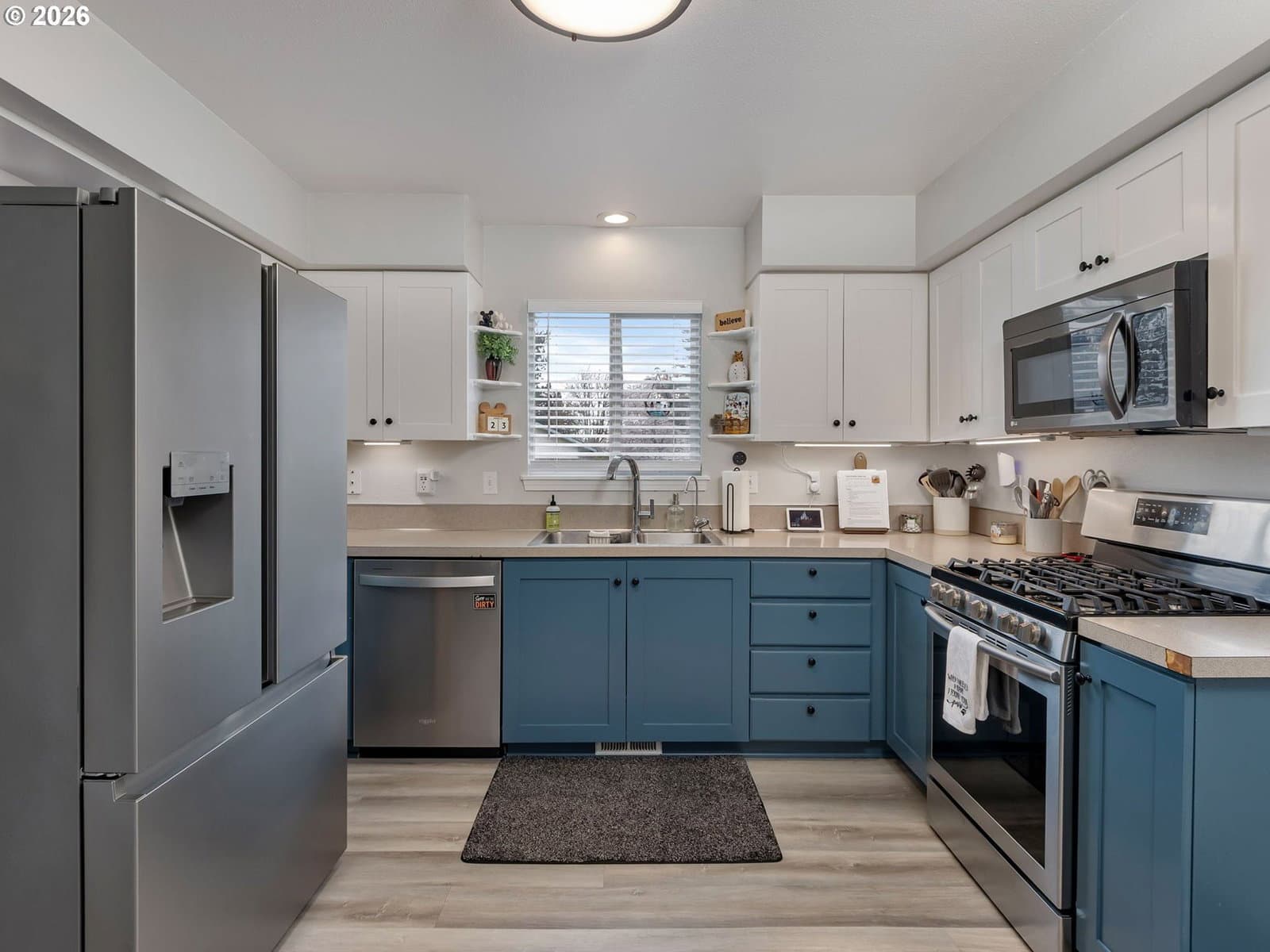 Gas Water Heater, Dishwasher, Disposal, Free-Standing Range, Plumbed For Ice Maker