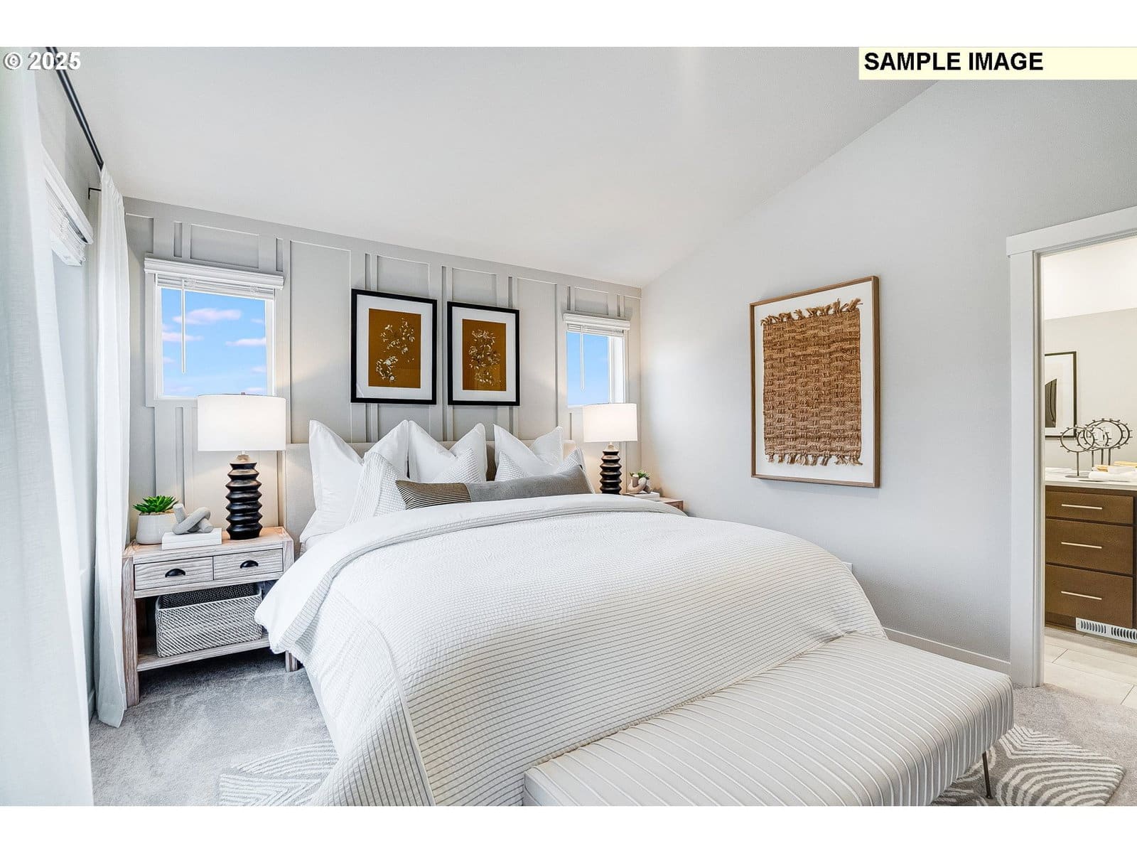 This new construction townhome by Lennar is located in Butternut Creek, a new community with a playground, dog park, and basketball court, just 15 minutes from Topgolf and less than 20 minutes from Nike headquarters. The 3 bedroom, 2.5 bathroom Tumalo plan features an open first floor that brings together the kitchen, dining area, and great room with a fireplace and floating mantle, while an upstairs loft provides added versatility between three bedrooms. The primary suite includes a walk-in closet and spa-inspired primary en-suite bath with a separate tub and shower and double vanity, and a rear two-bay garage adds convenient access. Interior highlights include quartz countertops, shaker-style cabinets, LVP (luxury vinyl plank) flooring in the kitchen and entry, LVT (luxury vinyl tile) in the bathrooms, two-tone interior paint, and fencing. This home also includes central air conditioning, a refrigerator, washer and dryer, and blinds—all at no extra cost! Rendering is artist conception only. Photos are of a similar home, features and finishes will vary. Move-in ready! Homesite 440. Flex credit/closing cost incentive available when financing with preferred lender! Use towards rate buydown and closing costs.