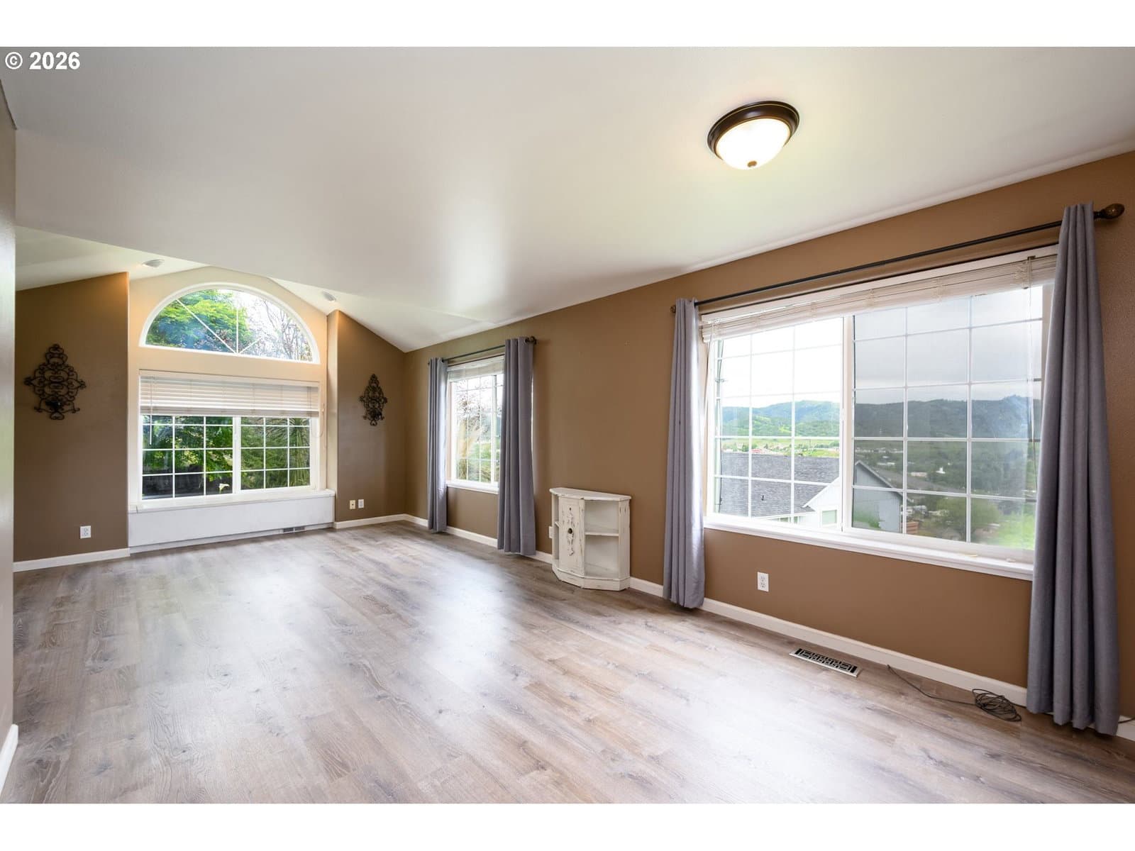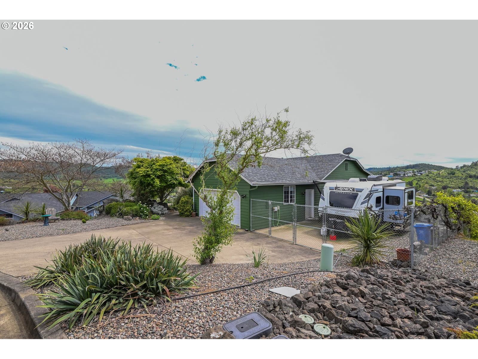 Welcome to this spacious and versatile 2,764 sq ft home, offering 4 bedrooms and 3 full bathrooms on a beautifully sized 0.54-acre lot, providing room to breathe both inside and out.The main level features three bedrooms and two full bathrooms, while the lower level offers a fourth bedroom or office and an additional full bath, ideal for guests, remote work, or multi-generational living.Thoughtfully designed for both everyday living and gathering, the home offers multiple living spaces across both levels, anchored by a cozy gas fireplace, creating inviting places to relax, connect, and unwind. Enjoy the surrounding views from several rooms throughout the home or step outside to the wrap-around deck and patio, perfect for quiet mornings or entertaining. The grounds reflect a love of simple, intentional living, with stock tank planters, raised garden beds, and established fruit trees ready to enjoy. Additional highlights include a two-car garage, RV parking with 30-amp electrical hookup, and the added benefit of transferable high-speed internet through Umpqua Broadband, making this home as practical as it is inviting.