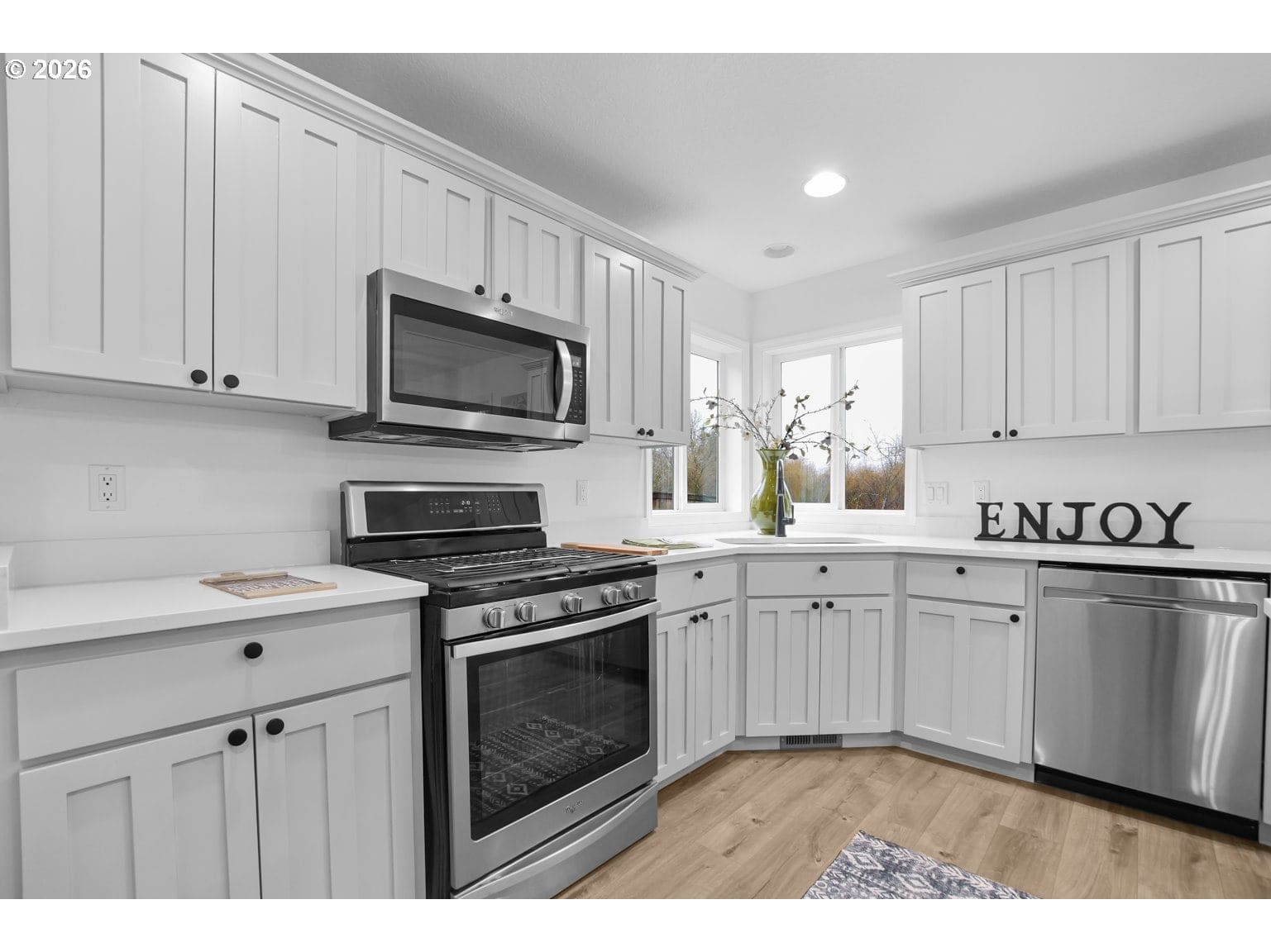 Open House 2/7 from 11-1pm! Welcome to your dream home at 914 NW 16th Court, nestled in the charming neighborhood of Battleground, WA. This splendid traditional two-story residence is a treasure waiting to be discovered. With 2,022 square feet of well-thought-out living space, this home strikes the perfect balance between elegance and comfort, making it an ideal retreat for anyone looking to enjoy modern living.As you step inside, you are greeted by the warmth of luxury vinyl floors that flow seamlessly throughout the main living areas. Fresh, new interior paint brightens every room, creating a welcoming atmosphere that complements the home’s inviting layout. The spacious living room, enhanced by stunning vaulted ceilings, beckons you to relax and unwind. Imagine cozy evenings spent here, where style meets comfort.The heart of this home reveals a beautifully appointed kitchen featuring gorgeous quartz countertops, ideal for culinary adventures or casual gatherings. It’s not just a space to cook; it’s an invitation to entertain family and friends. With ample cabinetry and thoughtful design, you'll find every culinary need met.Retreat upstairs to discover four generous bedrooms, each fitted with plush new carpeting that adds a touch of coziness. The master suite offers an oasis of peace, complete with an ensuite bathroom, allowing you to enjoy your personal sanctuary after a long day.Step outside to take in one of the crown jewels of this property—a picturesque view of the community pond. Whether it’s sipping your morning coffee on the patio or taking a leisurely evening stroll, the natural beauty surrounds you. Enjoy direct access to a tranquil walking trail that winds around the pond, providing the perfect backdrop for quiet reflection or leisurely walks.The location of this home is equally impressive. You are just minutes away from shopping, ensuring you have convenience at your fingertips. Additionally, the nearby parks invite you to explore outdoors.