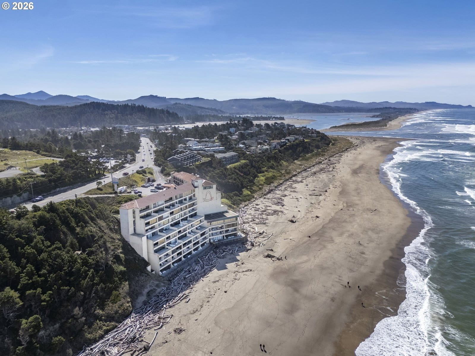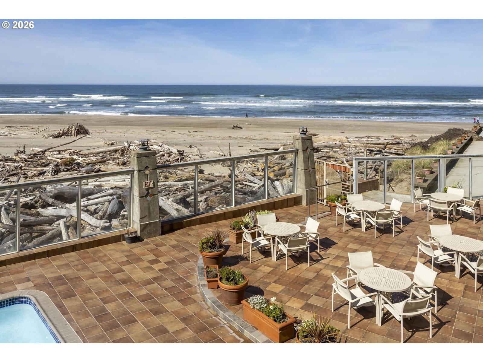 Oceanfront resort living at its finest. Wake up in this beautifully updated oceanfront 2nd-floor studio at Inn at Spanish Head, where sweeping Pacific views and a sun-filled southfacing balcony overlooking the pool create a truly exceptional coastal setting—the perfect backdrop for evening wine and unforgettable sunsets. Love storm watching? Settle in by the elegant electric fireplace with a warm drink and take in the dramatic waves from the comfort of your own private, year-round retreat. Thoughtfully designed and turnkey, this fully furnished condo showcases recent updates, a full kitchen, a king-sized bed, and a dining table with barstools ideally positioned to enjoy meals with a view. An owner's private storage closet and a bright, comfortable living space complete this refined coastal escape. Located within one of Lincoln City's premier oceanfront resorts, owners and guests enjoy an array of amenities including a heated pool, hot tub spa, fitness center, game room, laundry facilities, valet parking, room service, full-time on-site rental management, and the renowned Fathoms Restaurant & Lounge. Just moments from miles of sandy beach, this location embodies the very best of Oregon Coast living. Currently operating as a nightly vacation rental and owner's vacation getaway. Schedule your private showing and begin experiencing oceanfront living at its finest!