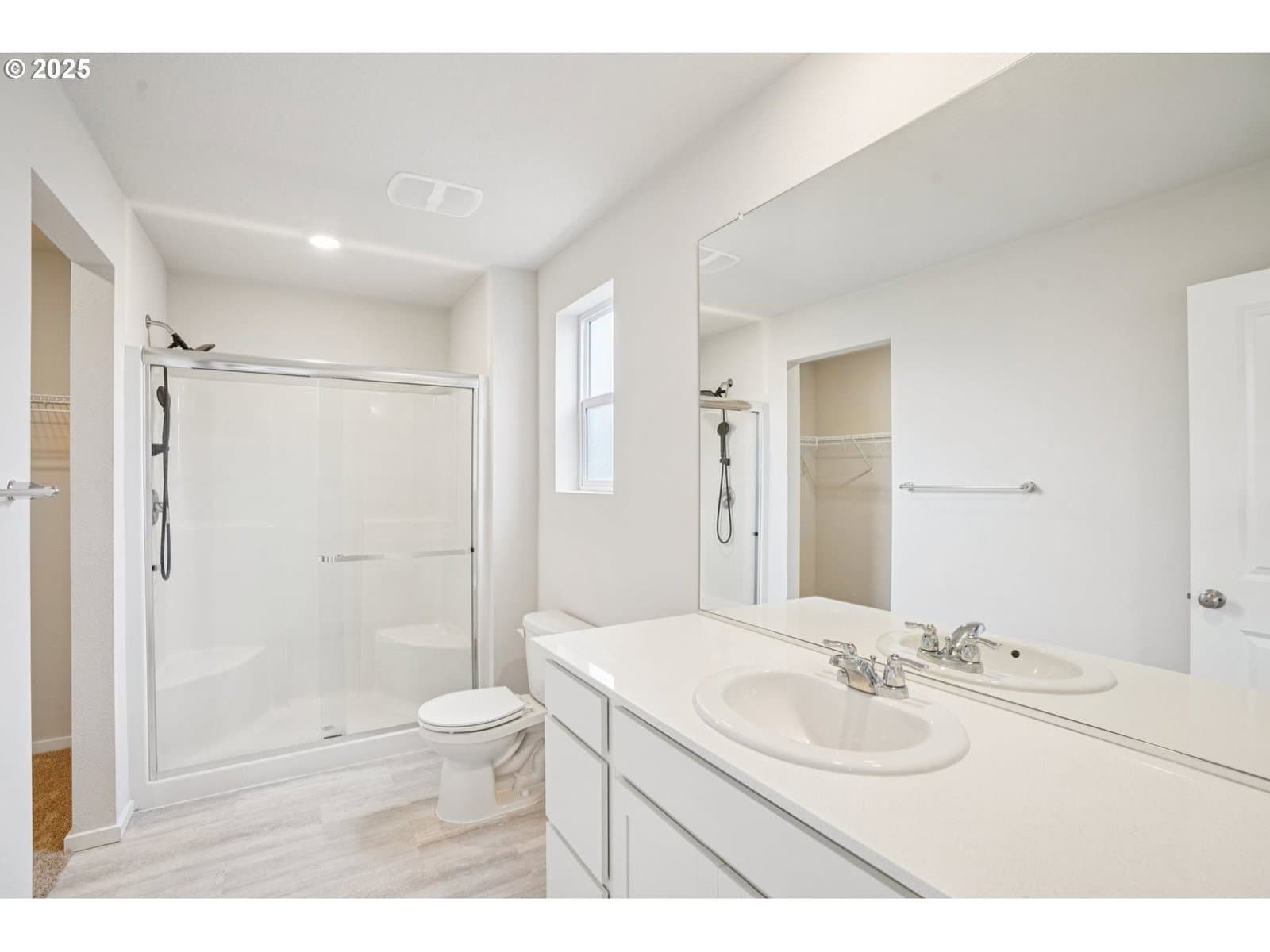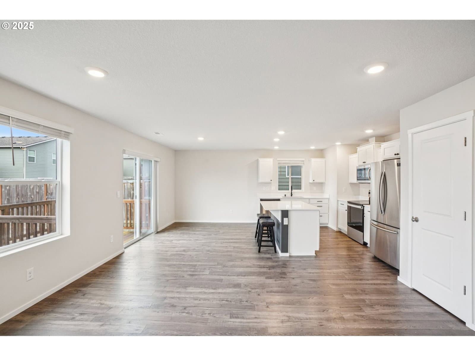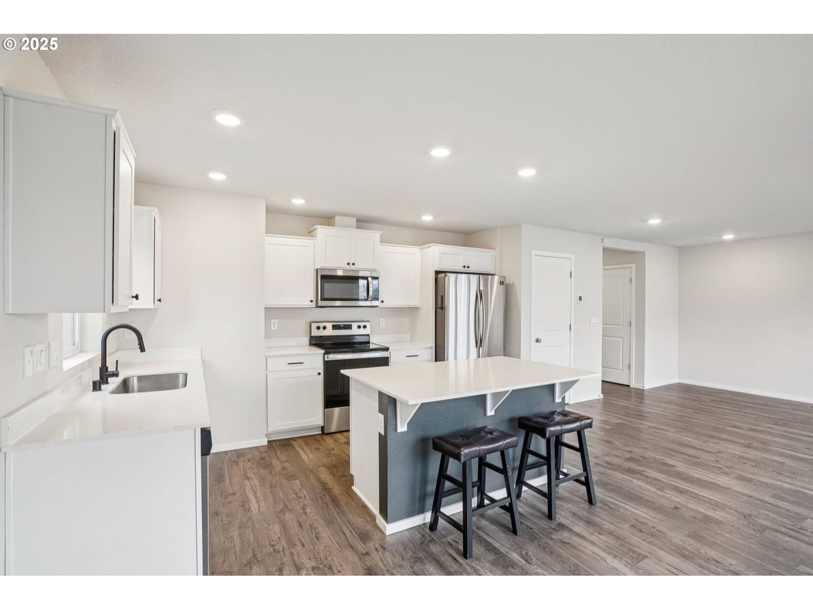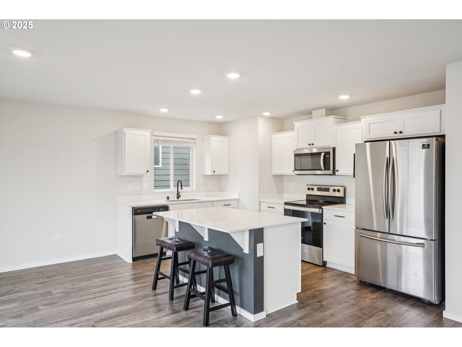 Welcoming covered front porch with keyless entry leads into a bright, open great-room layout with seamless flow between the family room, dining area, and island/breakfast bar kitchen. The family room features recessed lighting and laminate flooring, while the kitchen offers stainless Whirlpool appliances—including a built-in dishwasher, microwave, and glass-cooktop range—plus a stainless Samsung refrigerator. Quartz countertops, abundant cabinetry with display space above, a walk-in pantry, and a generous island with breakfast bar create an ideal space for cooking and gathering. The adjacent dining area provides slider access to the back deck. Upstairs, the primary en-suite includes recessed lighting, LVP flooring, a walk-in closet, and an en-suite bath with single sink quartz vanity and shower. The upper level also hosts three additional bedrooms, a full bath with single sink quartz vanity and combo soak tub and shower, and a dedicated laundry room equipped with a Samsung washer and dryer. A convenient main-level powder room with pedestal sink serves guests. Interior highlights include an open great-room design, island/breakfast bar kitchen, stainless appliances, walk-in pantry, upper-level linen closet, and a blend of laminate, LVP, and carpet throughout. Outside, the home offers a covered front porch, back deck, and a fully landscaped corner lot with sprinklers front and back. The two-car garage adds comfort and practicality to this well-appointed property. Mortgage savings may be available for buyers of this listing.