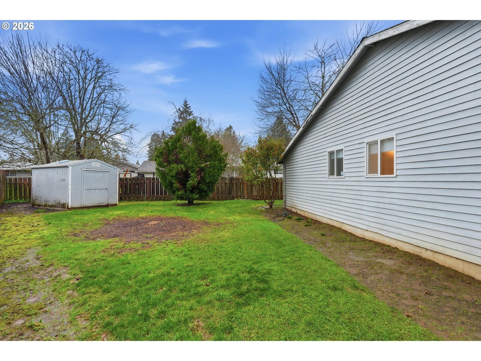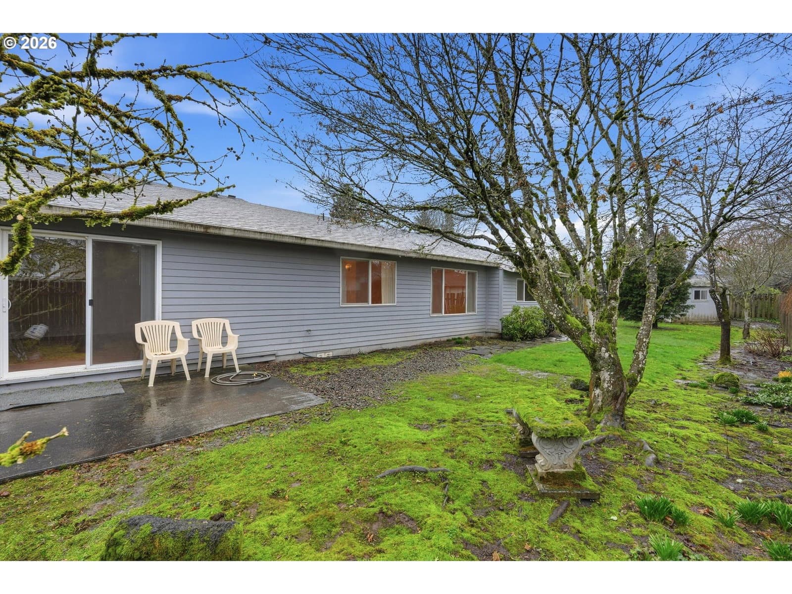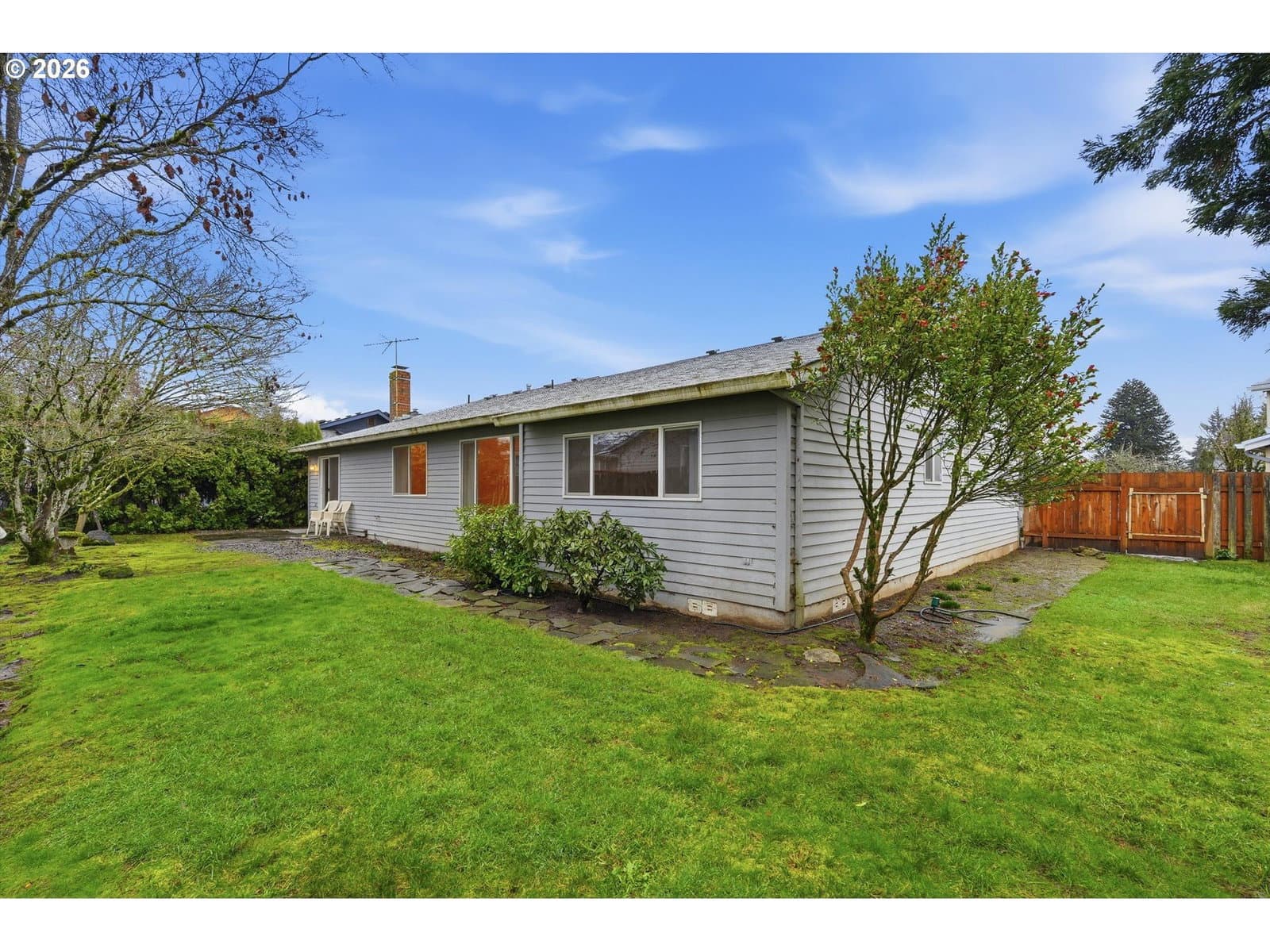 Fantastic one-level opportunity in a prime, convenient location! This 3-bedroom, 2-bath home offers great bones, a smart floor plan and the chance to add instant value with cosmetic updates. 1,587 sq ft of comfortable living in a highly convenient location near retail, restaurants, and services. Vaulted ceilings enhance the spacious feel, and the large but cozy family room features a fireplace insert and a sliding patio door leading to a large fenced backyard with great ornamentals that could use a little attention. The kitchen is bright and functional with space for a nice eating area and there is also a separate dining room that is open to the living room. The primary bedroom includes an en-suite bathroom with walk in shower & the 3rd bedroom was used as an office. The home offers great flow & feels like it lives large. It is well lit with nice windows throughout and features a welcoming entry and large double-car garage with work bench & attic space. The exterior has diagonal wood siding creating a nice retro look. This home is ready for fresh paint inside and out to make it shine! It's an excellent opportunity for buyers looking to personalize a home or add value. The furnace is in good working order, and the roof was installed in 2018–2019. Situated in a friendly neighborhood with fantastic neighbors, this home combines location, livability and great opportunity!