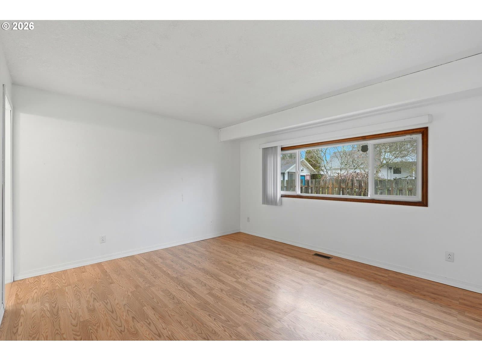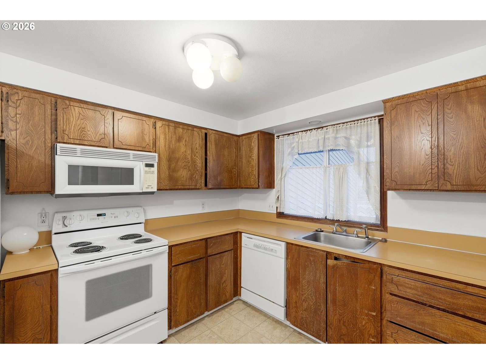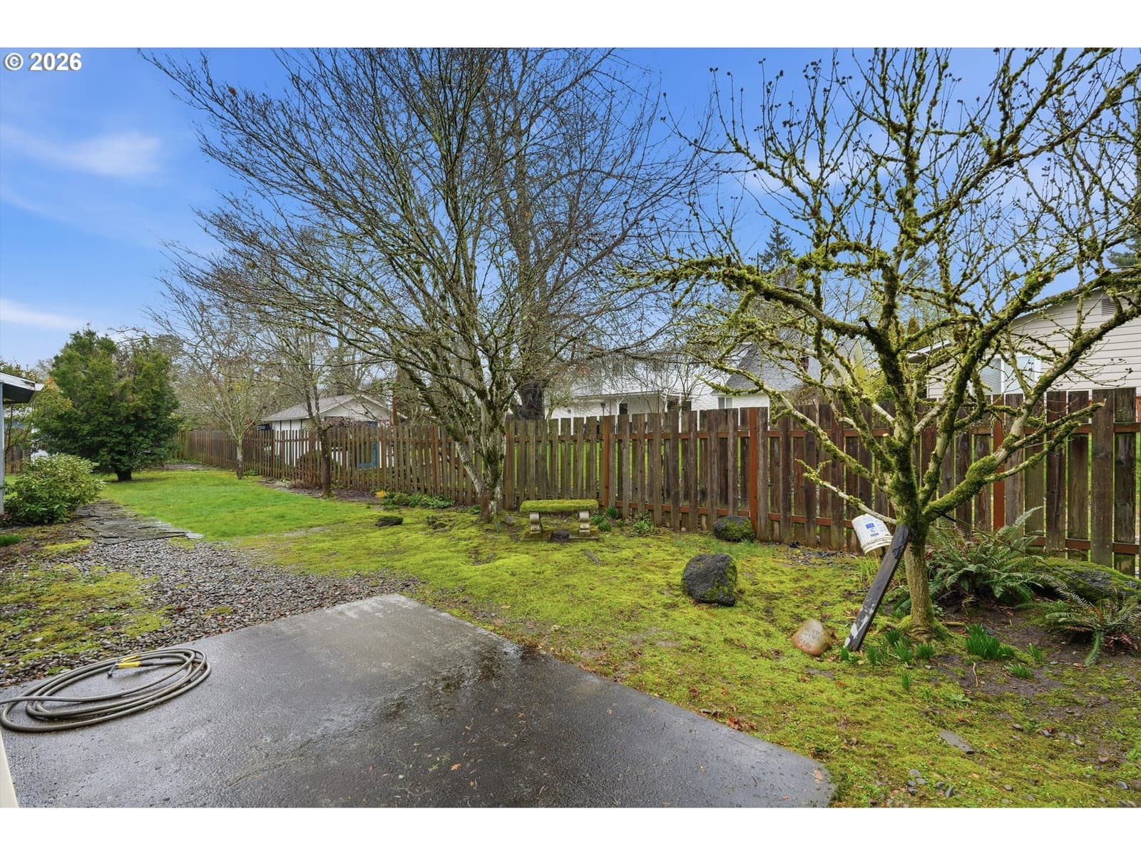 Fantastic one-level opportunity in a prime, convenient location! This 3-bedroom, 2-bath home offers great bones, a smart floor plan and the chance to add instant value with cosmetic updates. 1,587 sq ft of comfortable living in a highly convenient location near retail, restaurants, and services. Vaulted ceilings enhance the spacious feel, and the large but cozy family room features a fireplace insert and a sliding patio door leading to a large fenced backyard with great ornamentals that could use a little attention. The kitchen is bright and functional with space for a nice eating area and there is also a separate dining room that is open to the living room. The primary bedroom includes an en-suite bathroom with walk in shower & the 3rd bedroom was used as an office. The home offers great flow & feels like it lives large. It is well lit with nice windows throughout and features a welcoming entry and large double-car garage with work bench & attic space. The exterior has diagonal wood siding creating a nice retro look. This home is ready for fresh paint inside and out to make it shine! It's an excellent opportunity for buyers looking to personalize a home or add value. The furnace is in good working order, and the roof was installed in 2018–2019. Situated in a friendly neighborhood with fantastic neighbors, this home combines location, livability and great opportunity!