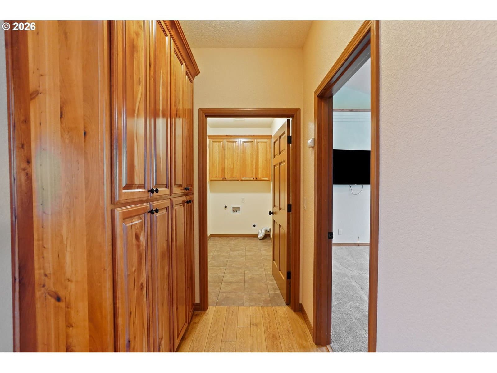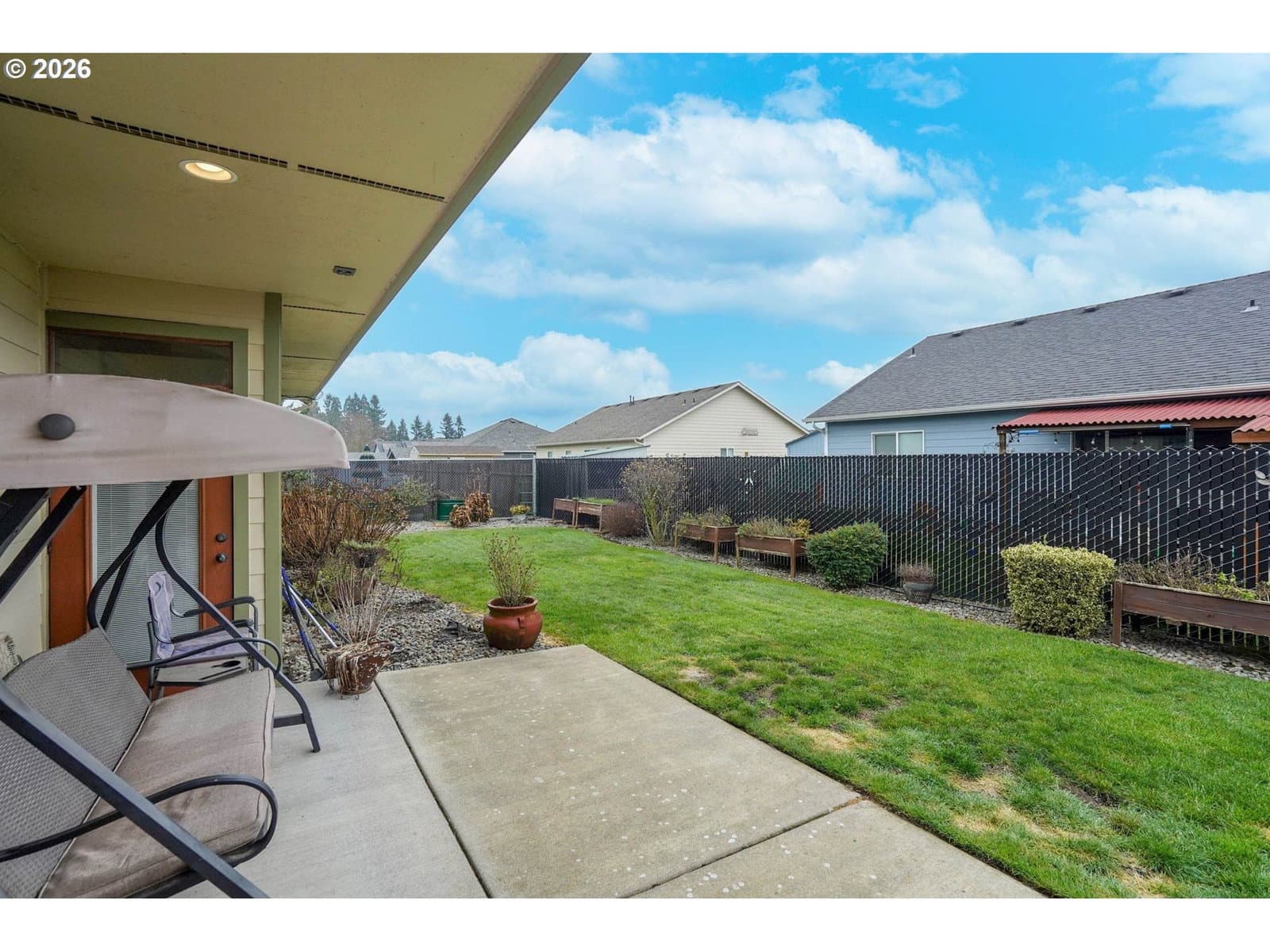 Welcome to this meticulously crafted 2010 custom home situated on the last lot of the street and showcases quality craftsmanship and thoughtful upgrades throughout.The heart of the home features a beautiful kitchen equipped with premium solid cabinetry, convenient pull-out shelving, and a convection oven for the culinary enthusiast. Beautiful hardwood floors flow seamlessly through the main living areas, while the bedrooms offer the comfort of new carpeting.Throughout the home, you'll appreciate the attention to detail with solid doors and closet doors that speak to the quality construction. The property sits on a fully fenced lot with an automated sprinkler system for easy maintenance.Outdoor living is enhanced by raised garden beds perfect for the home gardener, plus an RV pad complete with 30-amp electrical hookups and waste disposal connections—ideal for extended family visits or your own adventures.The peaceful location provides added privacy and reduced traffic while maintaining convenient access to neighborhood amenities.This home combines modern conveniences with quality finishes, creating a move-in ready opportunity for discerning buyers.