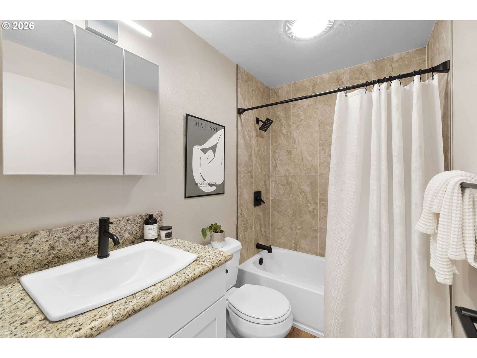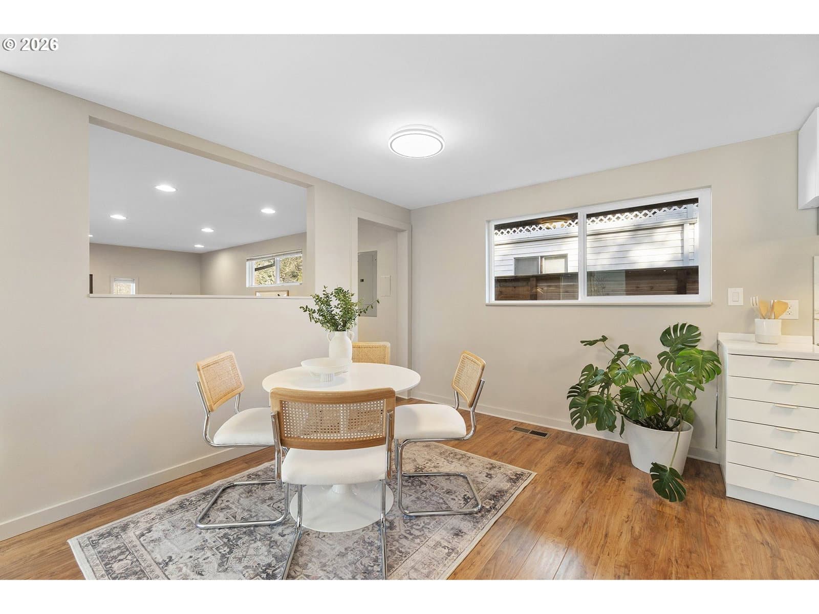 Small but mighty — and serving serious Woodstock vibes. This 3-bedroom, 1-bath charmer proves you don’t need a huge footprint to live large. With 1,220 square feet completely transformed, this home is dialed, stylish, and absolutely ready for its next chapter. Let’s start with the good stuff: a new roof, fresh interior and exterior paint, new engineered hardwood flooring throughout, a beautifully remodeled kitchen with all-new sleek stainless steel Samsung appliances, an updated bathroom, new lighting, washer/dryer and more. Tired of touring houses without air conditioning? We’ve got you covered. This house truly has it all, which means you get to skip the renovation phase and go straight to the fun part: living here. Unlike many ramblers, the layout offers more living space than you’d expect. You’ll find a comfortable living room and a huge family room — both just off the kitchen — keeping everyone connected whether you're hosting friends, binge-watching your latest show, or cooking something fabulous. Outside, you will enjoy the privacy of the fully fenced backyard and you can kick back and relax on the patio, or slip into the hot tub (yes, it works!). If you have a green thumb, this sunny space is perfect for adding perennials or raised beds. Save on water bills with the drought tolerant landscaping. There’s also a shed ready to hold bikes, tools, garden gear, or whatever your Portland hobbies require. And the location? Hard to beat. Woodstock is like Diet Sellwood! With an impressive 99 BikeScore, you’re close to trails with quick access to Woodstock Park and all the beloved eateries and shops along vibrant Woodstock Blvd. Summer will be here before you know it, and you’ll be able to stroll over to the Farmers Market from June through October. [Home Energy Score = 4. HES Report at https://rpt.greenbuildingregistry.com/hes/OR10245652]