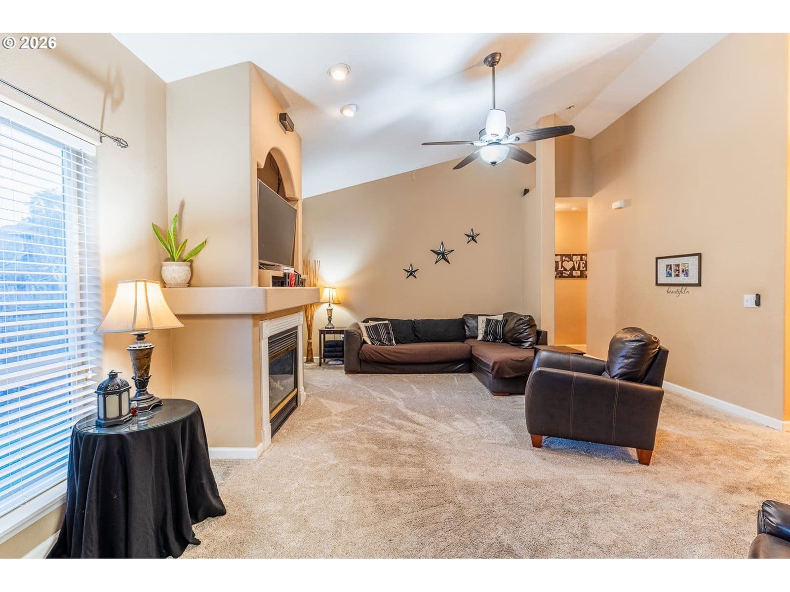 Come experience this single level, 3 bed, 2 bath, home with a layout that is inviting and spacious. Located on a quiet cul-de-sac, yet close to shopping, restaurants, and entertainment. Vaulted ceilings make the space open and light. Lovely gas fireplace creates a cozy living area. Large primary bedroom with walk-in and ensuite. Very usable back yard with fire pit, garden space, and shed. Inside laundry room. This home is priced to sell.