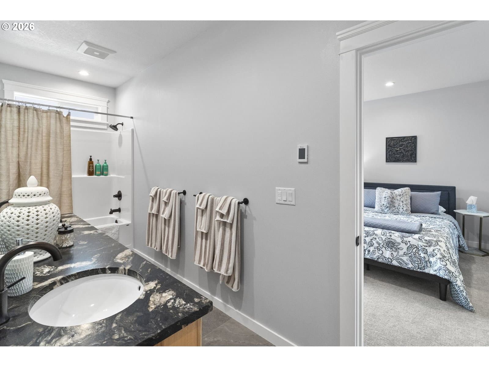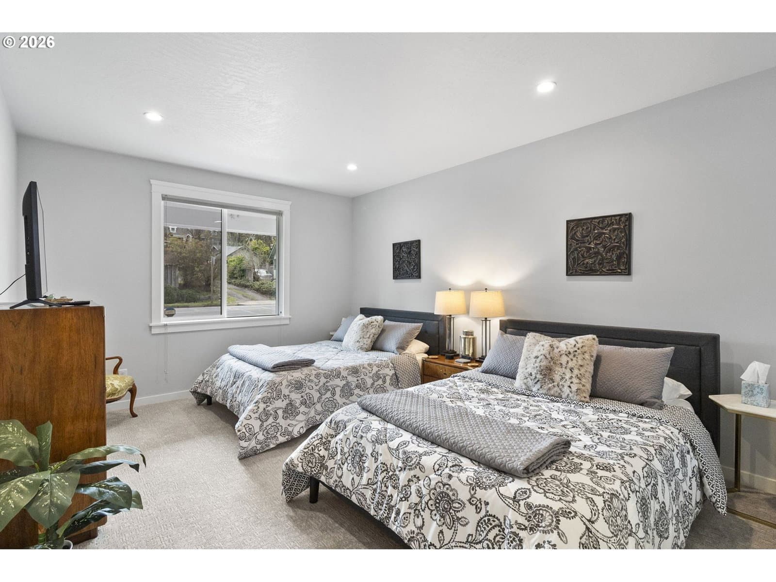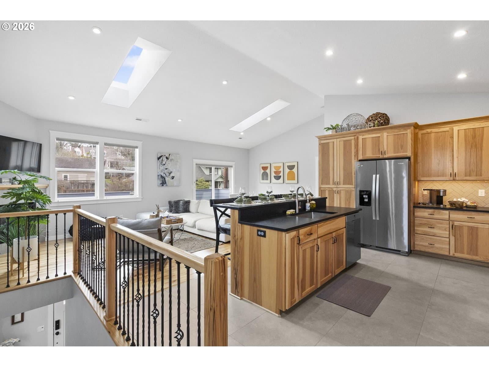 Lovely newer home (2020) and located in Mid-Town, this home features two primary bedrooms, one on ground level, and one on the upper level, each with walk-in closets and baths, spacious living areas with hardwood floors, vaulted ceilings, skylights, gas fireplace, dining, gourmet kitchen with stainless appliances, gas cooking and eating bar, indoor laundry, upper level deck with southern exposure, off street parking, 1-car garage with E-car charging station. Located just north of College Hill near shopping, restaurants, and South Eugene schools. Currently being used as an AirBNB with strong rental history, and would be ideal for a residence with easy access to U of O and Downtown.