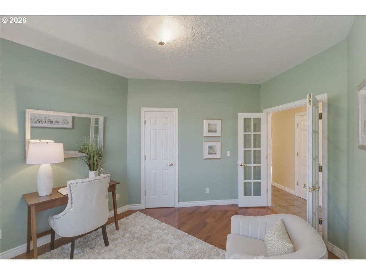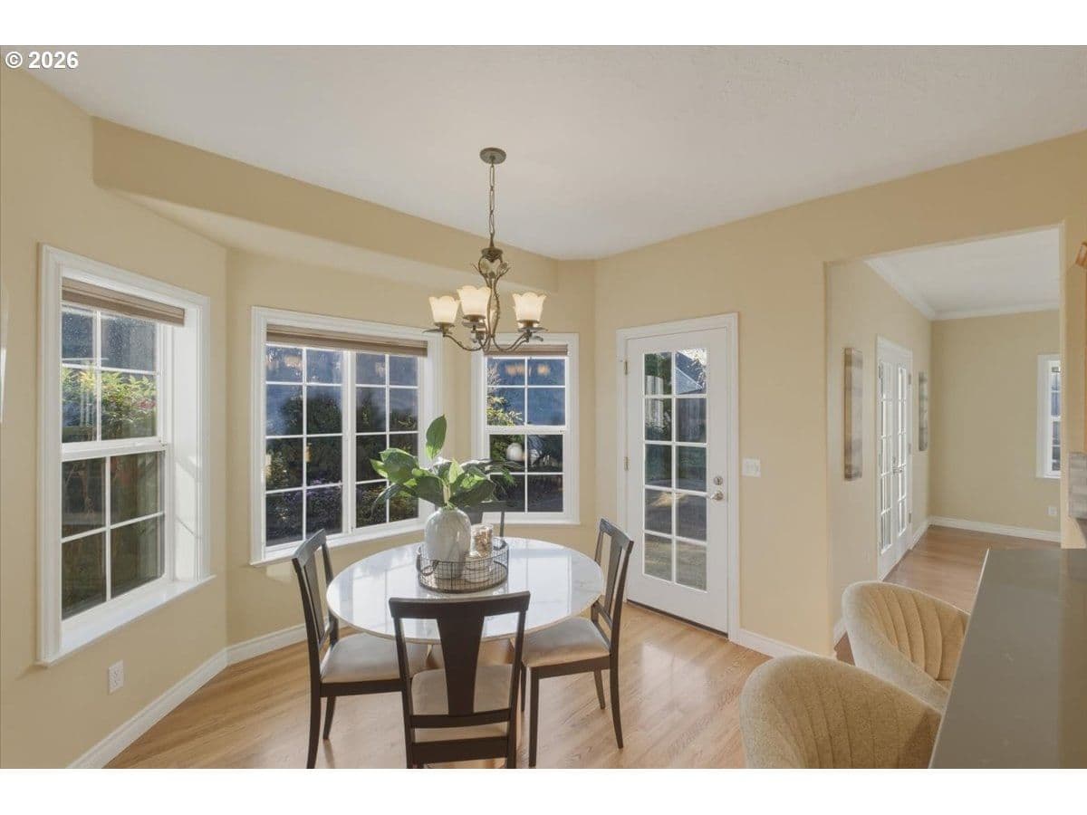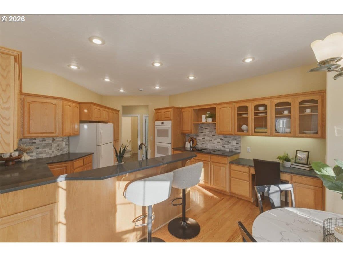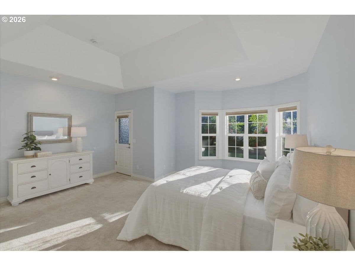 Welcome to this beautifully crafted custom home in the highly sought after Riverview Heights neighborhood. Situated on a spacious 0.24 acre corner lot, this stately residence offers timeless charm. Soaring vaulted ceilings in the formal living room, elegant staircase (stair chair included) & abundant natural light. Formal dining room w convenient wet bar. The kitchen is a standout, showcasing custom cabinetry, wood flooring, pantry, breakfast bar, & additional dining nook w French doors that open to the patio for seamless indoor/outdoor living. The main-level primary suite offers dual sinks, jetted tub, skylight, bay window, & private outdoor access. Additional main-floor features include a utility room w sink & ample storage. Upstairs, you’ll find two generously sized bedrooms along w a versatile bonus/recreation room. A den w closet on the main level offers flexibility for a home office or guest space. Outside, enjoy two covered patios ideal for year round relaxation, along w a large attic for extra storage. This home reflects quality craftsmanship w extensive tile & oak hardwood finishes, bay windows, & a warm, inviting great room w a gas fireplace. It’s unique floor plan, abundant storage, & prime location, this exceptional property is a rare opportunity you won’t want to miss. Schedule your private showing today.