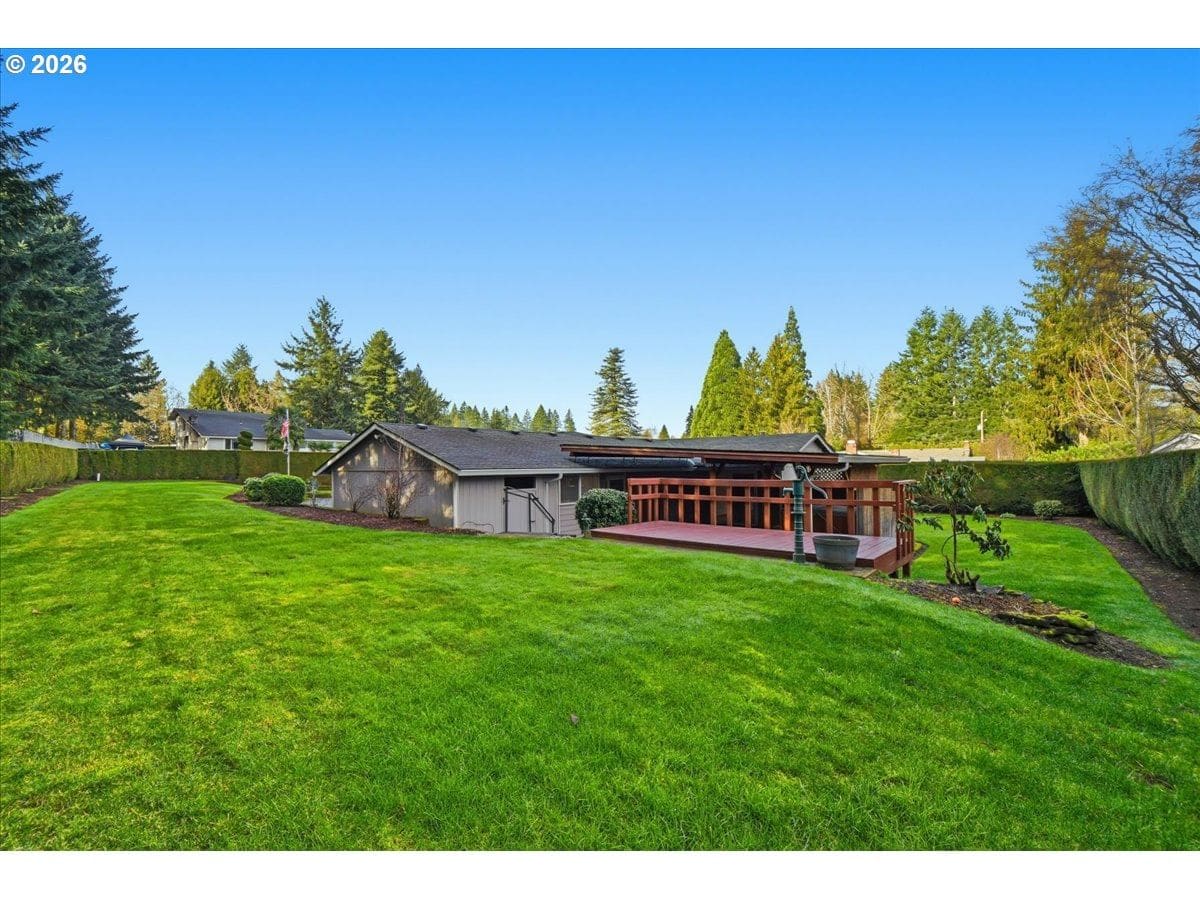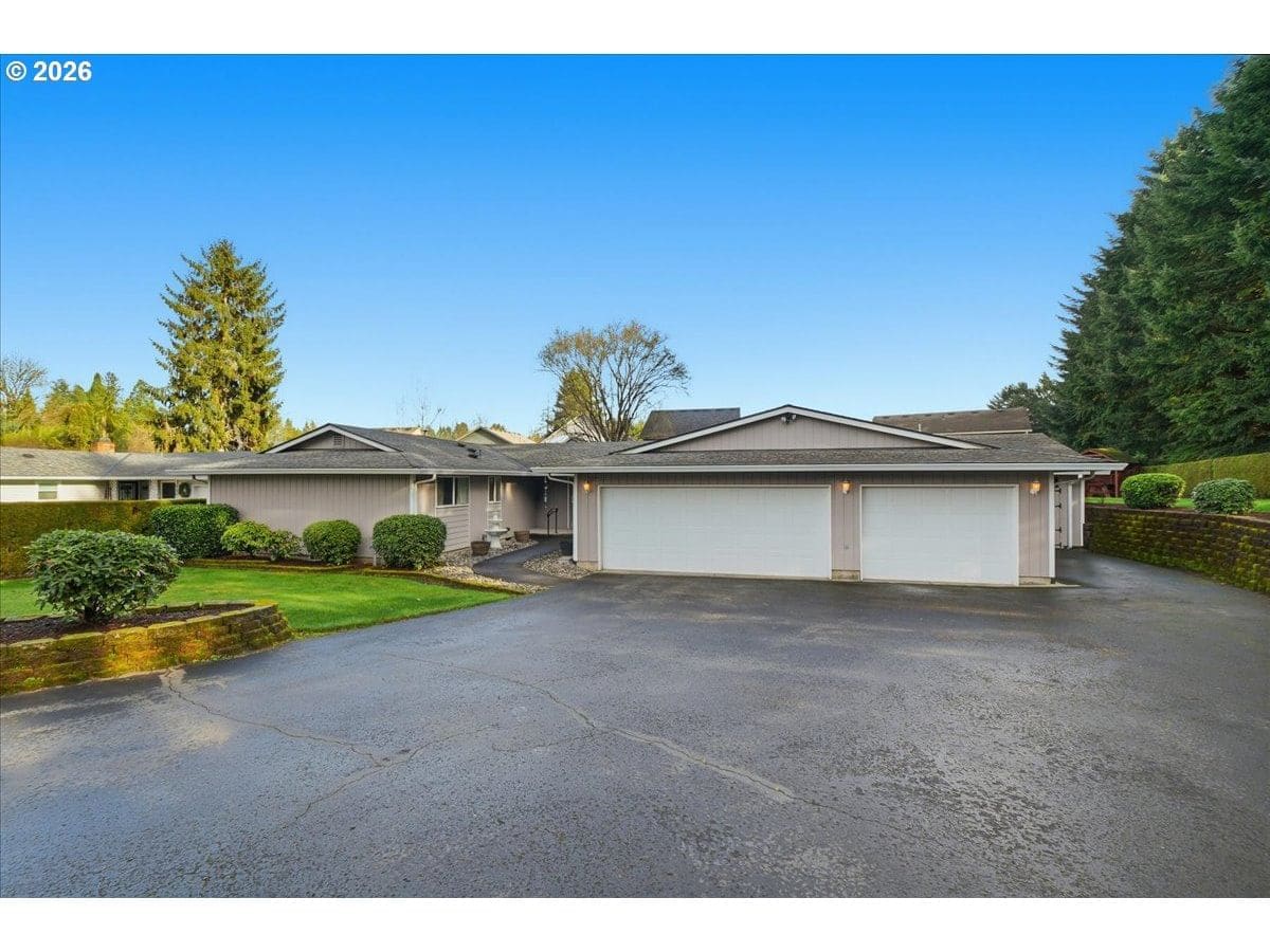 YOUR DREAM MANCAVE 6-CAR GARAGE! An extraordinary space for storage, parking, toys, projects and workshop. Close in location. Comfortable and well maintained one-level home sits on an oversized and private .41 acre lot with gated driveway. Newer updates include: exterior paint, gutters, composition roof, kitchen appliances, hot water heater. Extra's include: kitchen & garage refrigerators, washer, dryer, hot tub, attached TV's, 1-year home warranty. Huge garage (1,408sf) has extensive storage space above, built in cabinetry, workbench and attached shed (220sf) on the side. Additional highlights include: covered front porch, covered deck, patio, mature landscaping, privacy bushes, sprinkler system. For buyers seeking exceptional garage space, this home delivers!