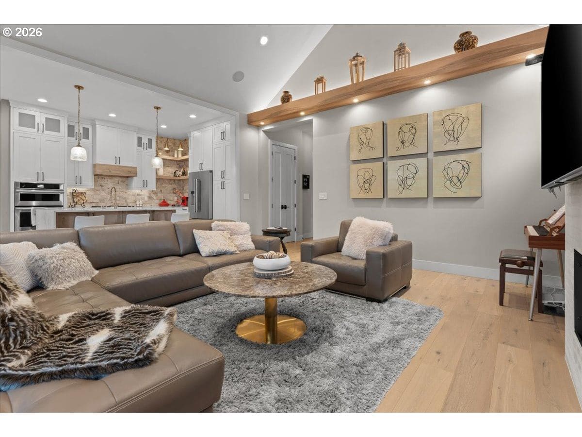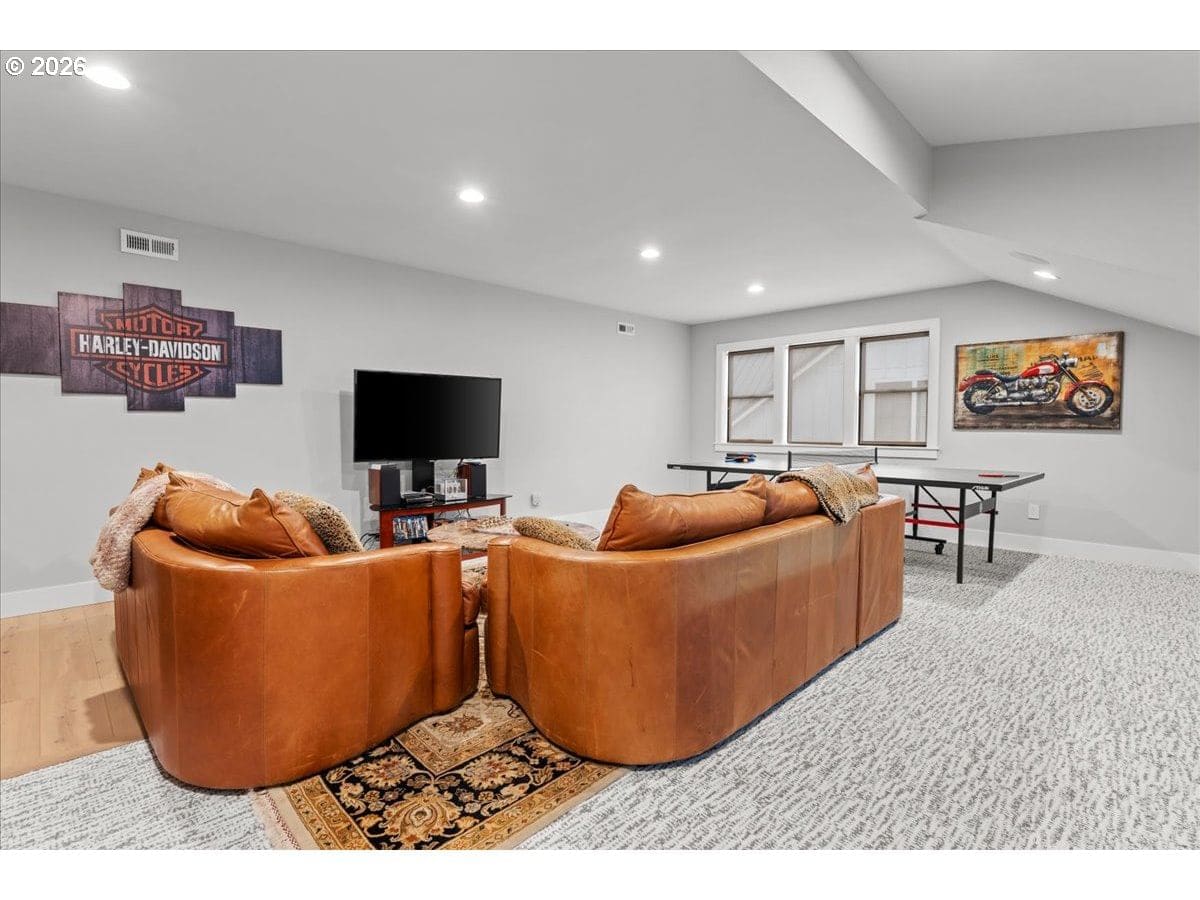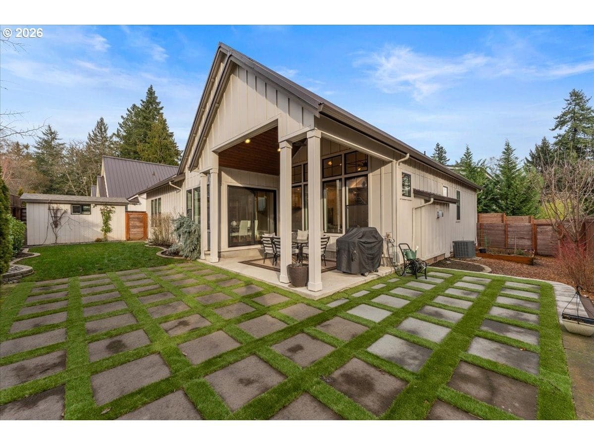 Welcome to this Modern Farm House with metal roof, surrounded by Fanno Creek Trail, Garden Home Park, Garden Home Recreation Center, walking trails, local shops (Black Rock Coffee, Trader Joe's, Ace Hardware, Dogtopia, Mudbay, and more) just minutes away and less than 2 miles from Washington Square Mall. Built with Earth Advantage/Energy Star practices for efficiency, durability and comfort. Main-level living with three bedrooms and two baths on the main, plus an upstairs multi use entertainment room with a built-in wet bar. Private fenced yard and large covered porch with vaulted ceiling, fan and BBQ hookup. South facing garden area with maturing apple and cherry trees, generous size shed for all your garden gear and generous RV parking for your favorite adventure vehicle complete this charming, light-filled home. Featuring high and vaulted ceilings, 8' doors, Fiberglass Marvin windows, quartz waterfall countertops throughout, heated tile floors in primary and under-the cabinet lighting in both bathrooms. Easy reach to major freeways, major employers, and everyday amenities. Your exciting next chapter starts here!